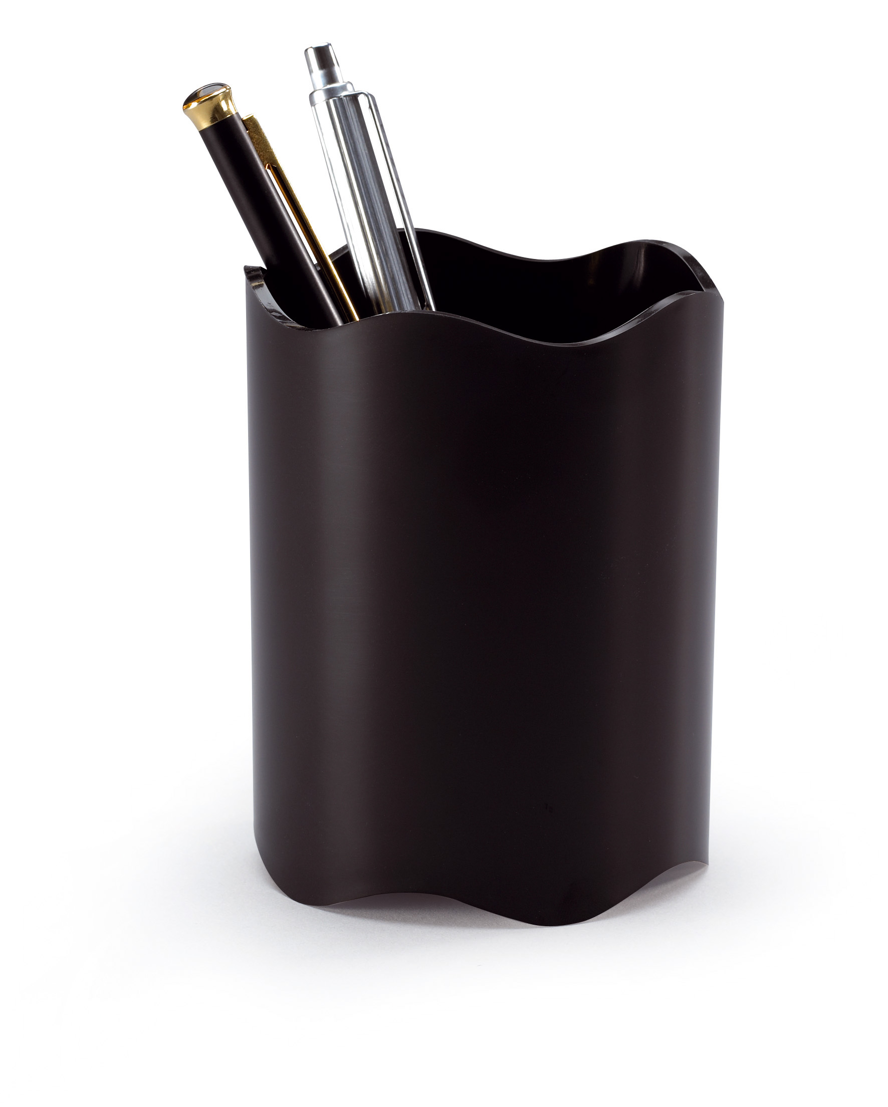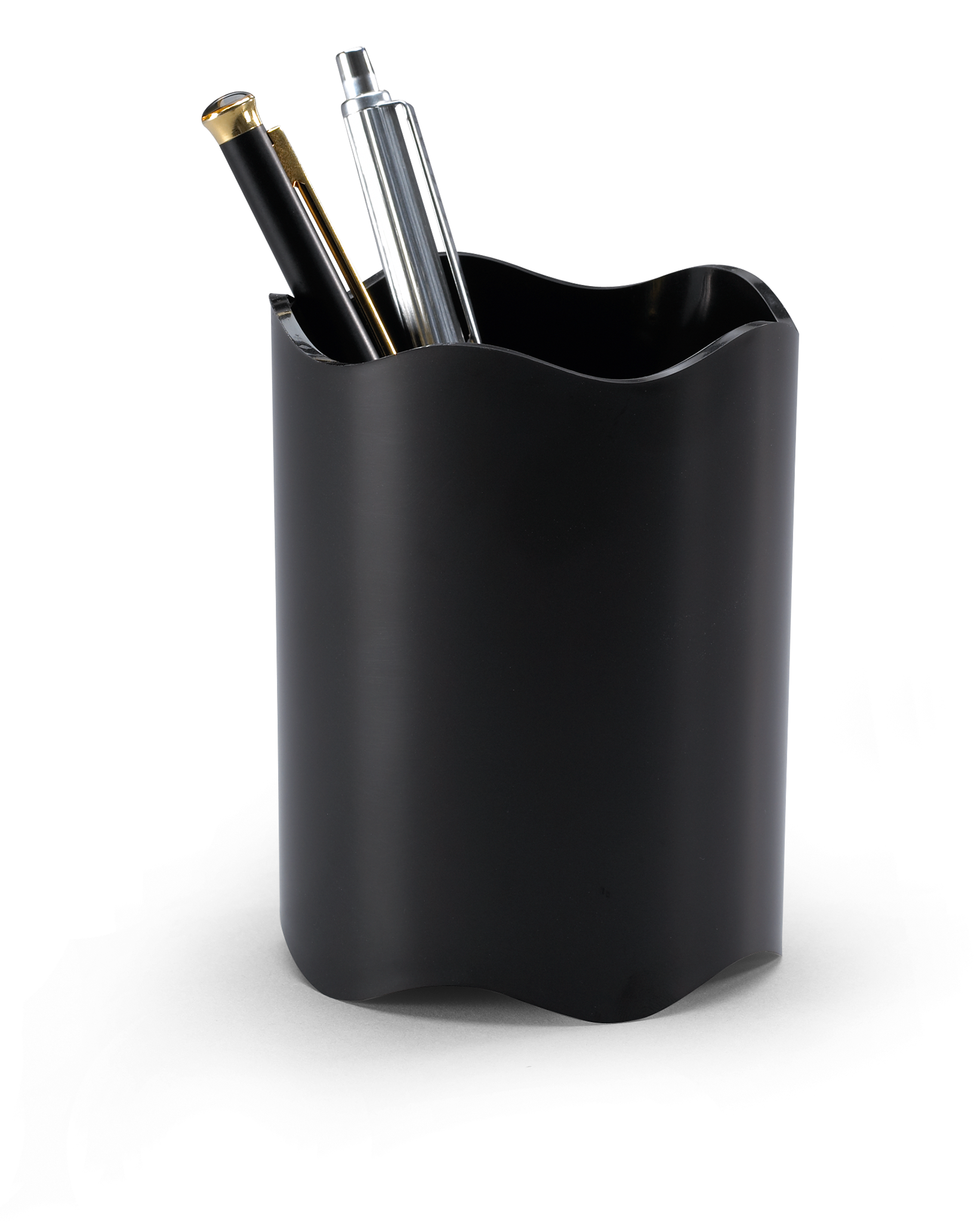 Rund penneholder med bølget kant til opbevaring af penne, sakse osv. Mål: ø 80mm. Højde 102mm.