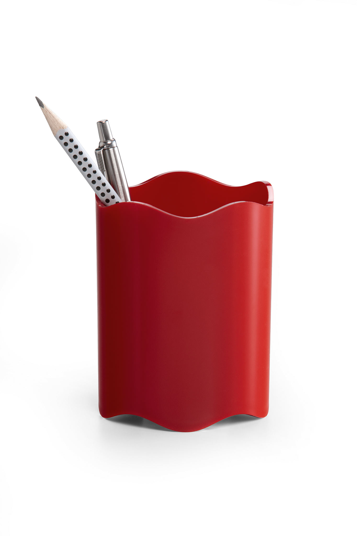 Rund penneholder med bølget kant til opbevaring af penne, sakse osv. Mål: ø 80mm. Højde 102mm.