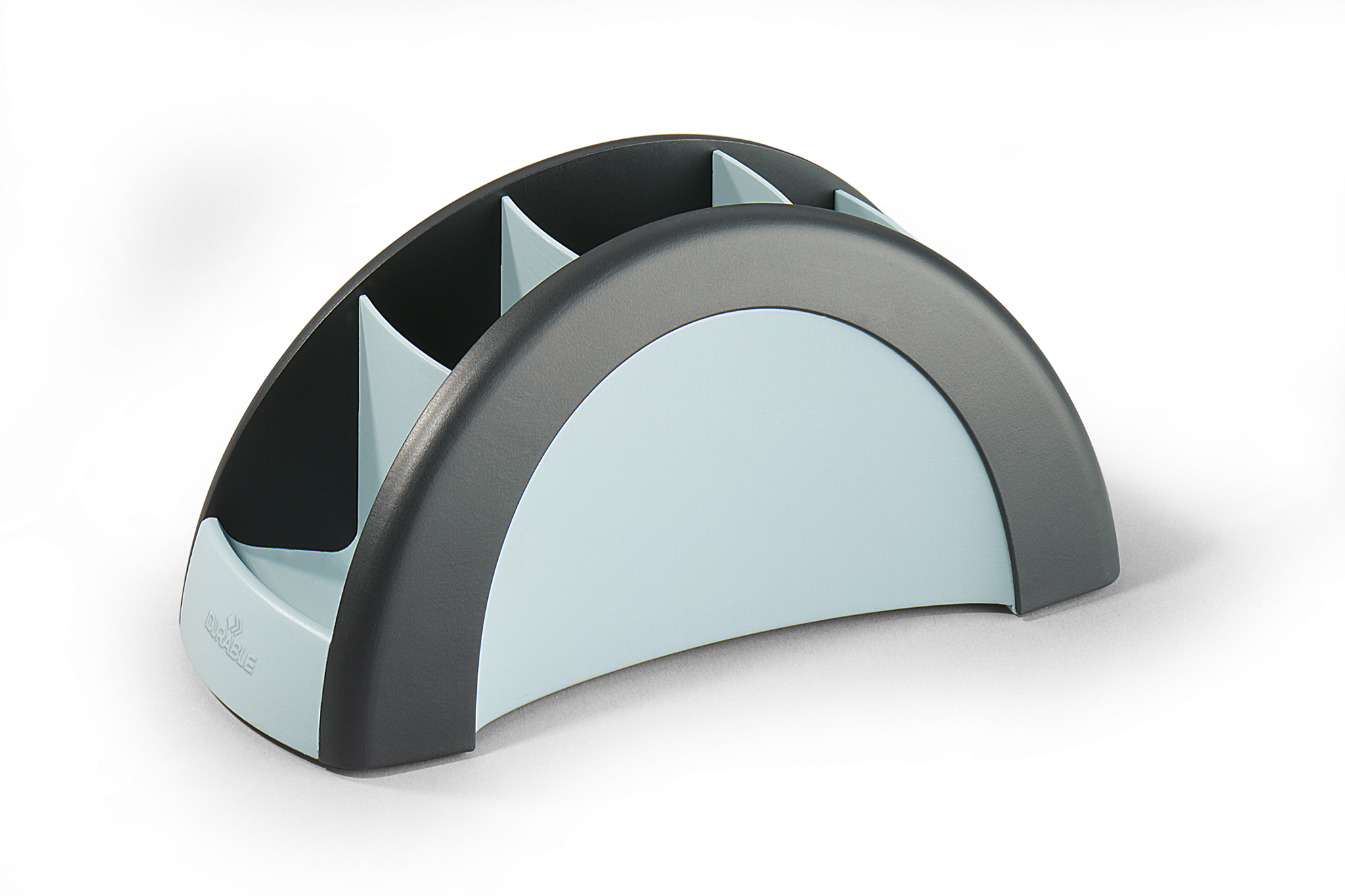 To farvet penneholder VEGAS med fem rum i forskellige højder med plads til penne, saks, clips m v.