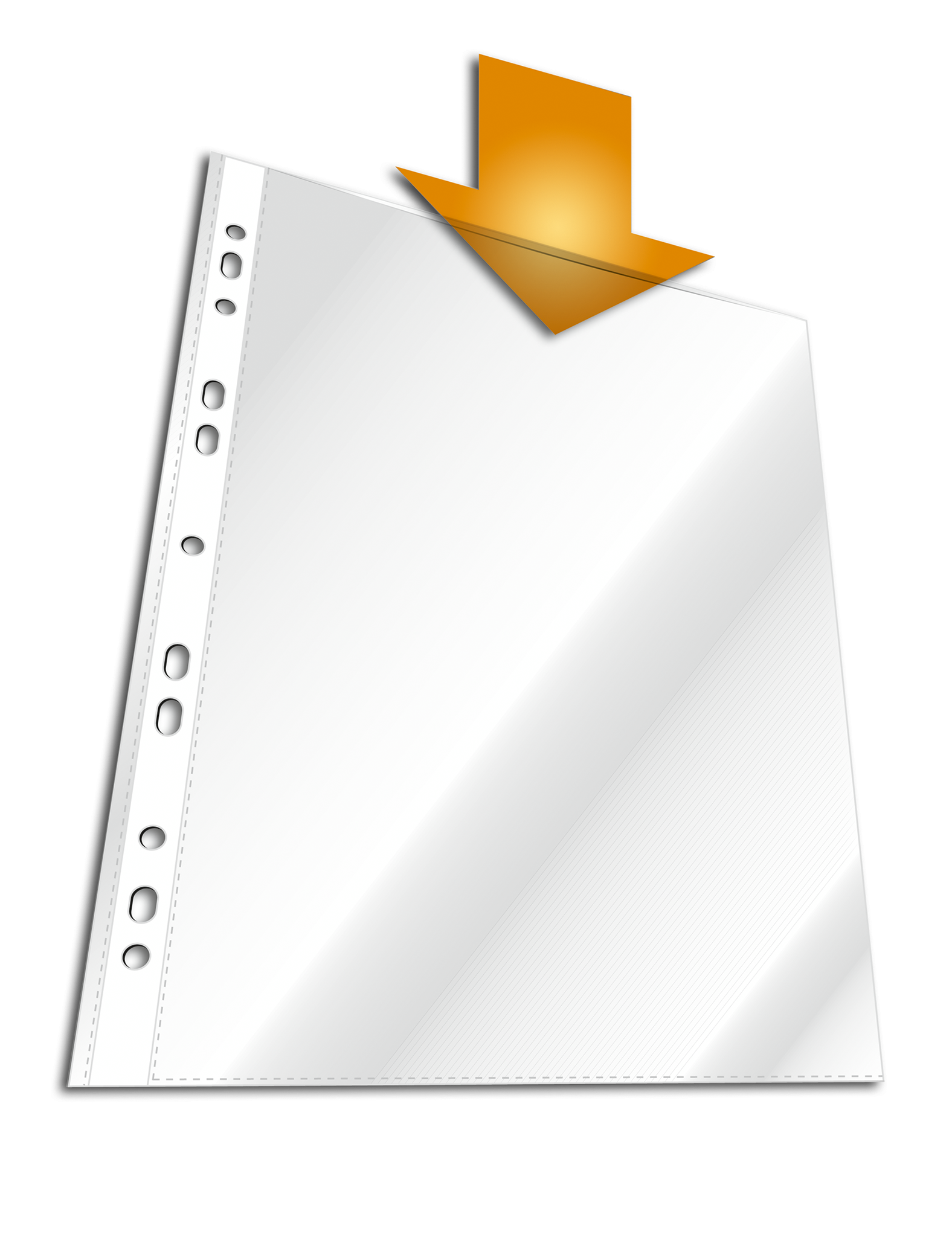 Glasklar plastlomme i 0,05 mm pp-plast. Forstærket multihuller og åbning i top. Kopisikker.