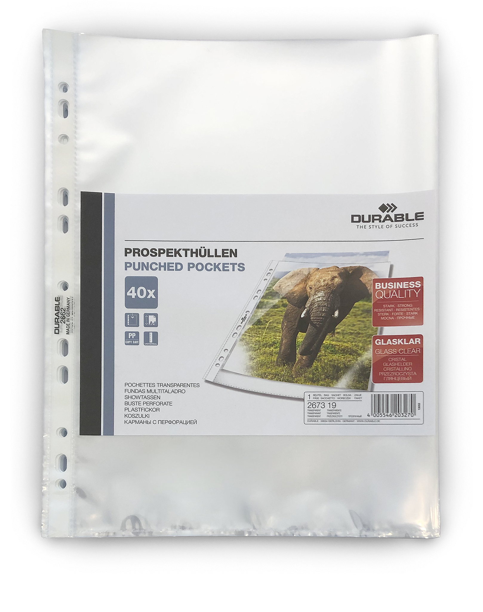 Glasklar plastlomme i 0,05 mm pp-plast. Forstærket multihuller og åbning i top. Kopisikker.