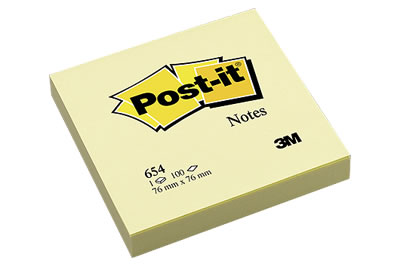 Denne Post-it er den klassiske variant som alle kender, 76 x 76 mm i den karakteristiske gule farve- Limen gør, at den kan flyttes flere gange, uden at miste sin klæbekraft.