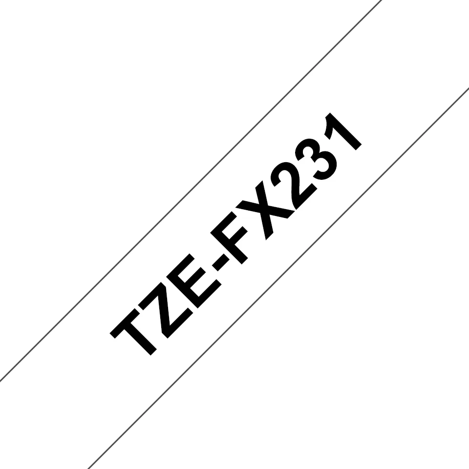 Brother TZe-FX231 sort på hvid-tape er ideel til fremstilling af identifikationslabels til kabler, ledninger, PVC-slanger eller andre ting, der er cylinderformede. Og så sikrer klæbemidlet, at dine vigtige labels bliver siddende i længere tid. Kompatibel med P-touch-labelprintere, der har TZ- eller TZe-logoet på tapedækslet.