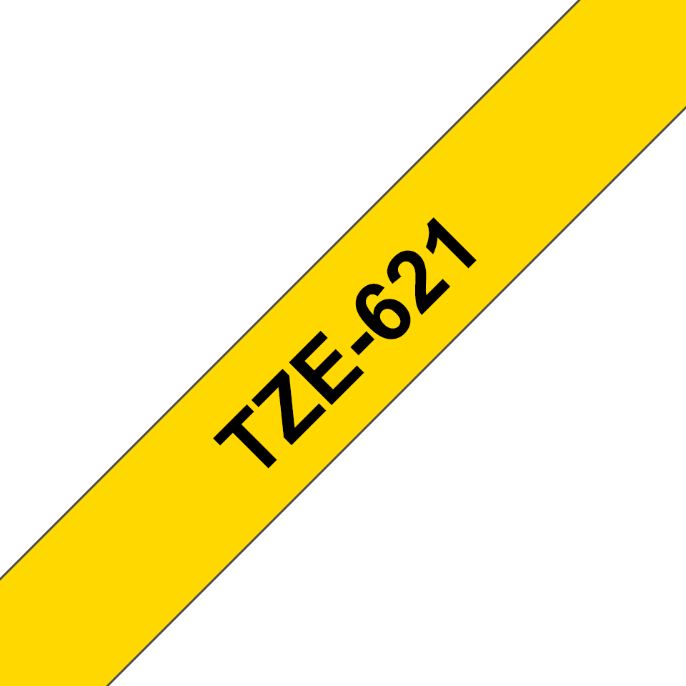 PRÆGETAPE BROTHER 9 MM SORT/GUL TZ 621 LAMINERET