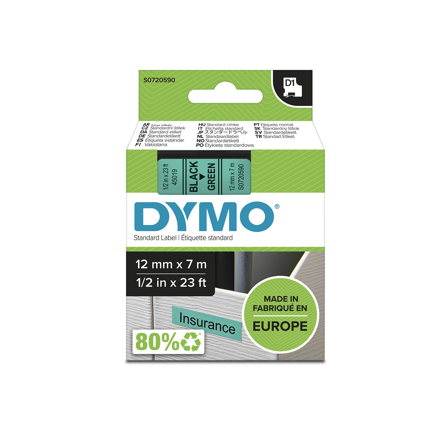 PRÆGETAPE DYMO D1 12 MM X 7 M SORT/GRØN 45019