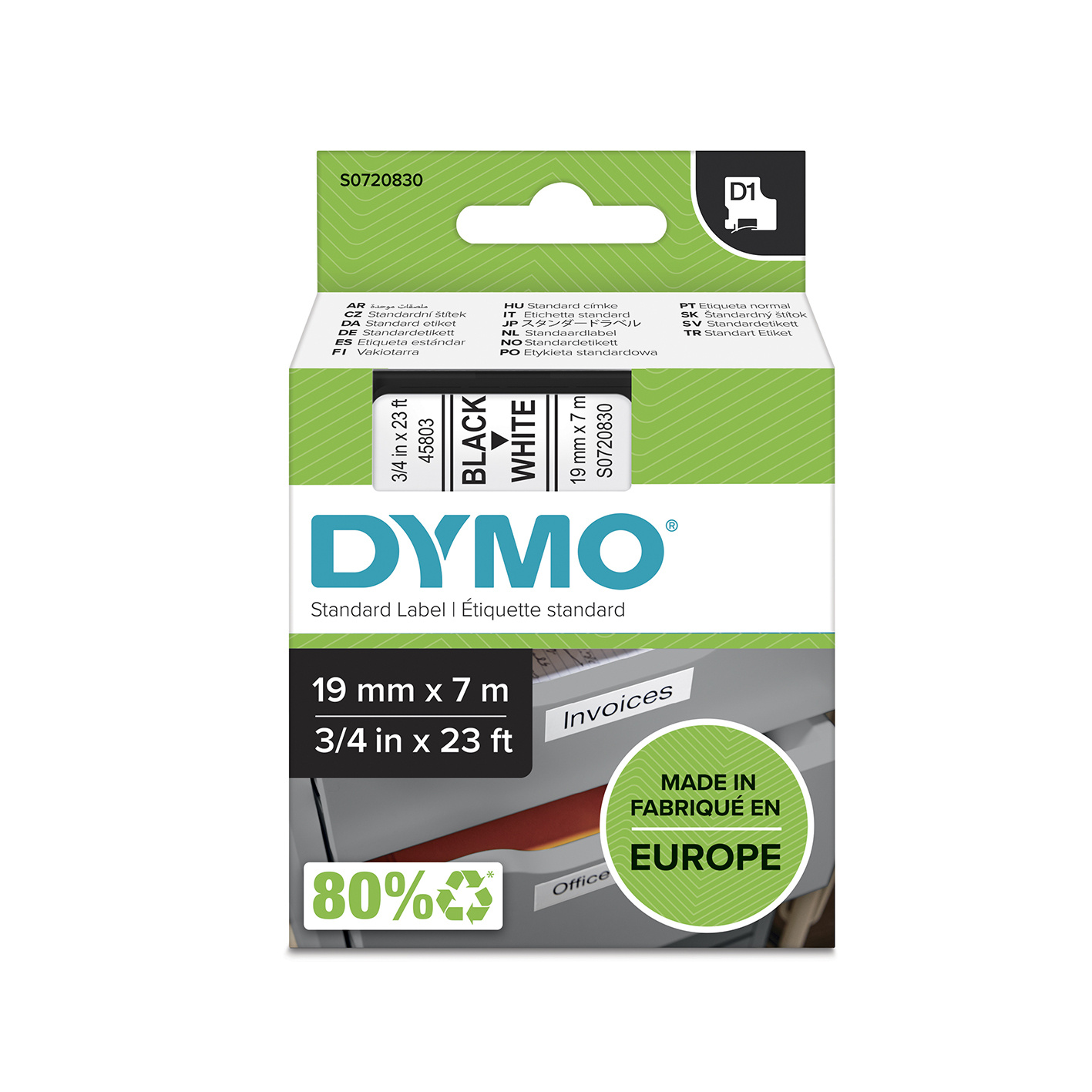 Prægetape til Dymo. Alle tapes er plasttape, udviklet til at opfylde alle dine mærkningsbehov.