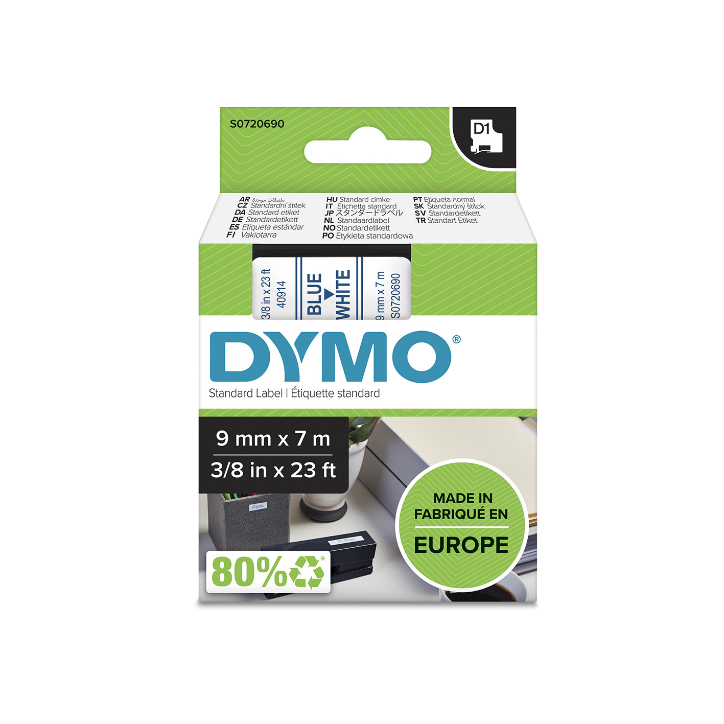 Prægetape til Dymo. Alle tapes er plasttape, udviklet til at opfylde alle dine mærkningsbehov.