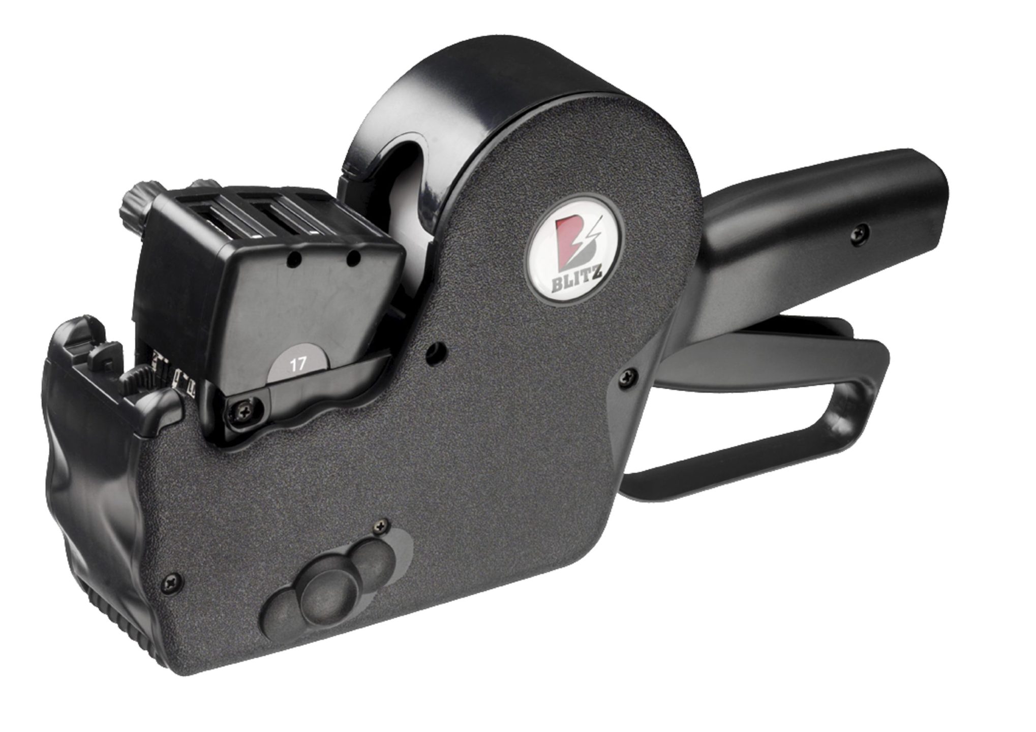 Støjsvag 2-linjet prismærkepistol med 12 cifre på øverste linje og 7 cifre på nederste linje. Prismærkepistolen har et ergonomisk håndtag og nemt etiket- og farverulleskift. Plads til 1000 stk. 32 x 19 mm etiketter.