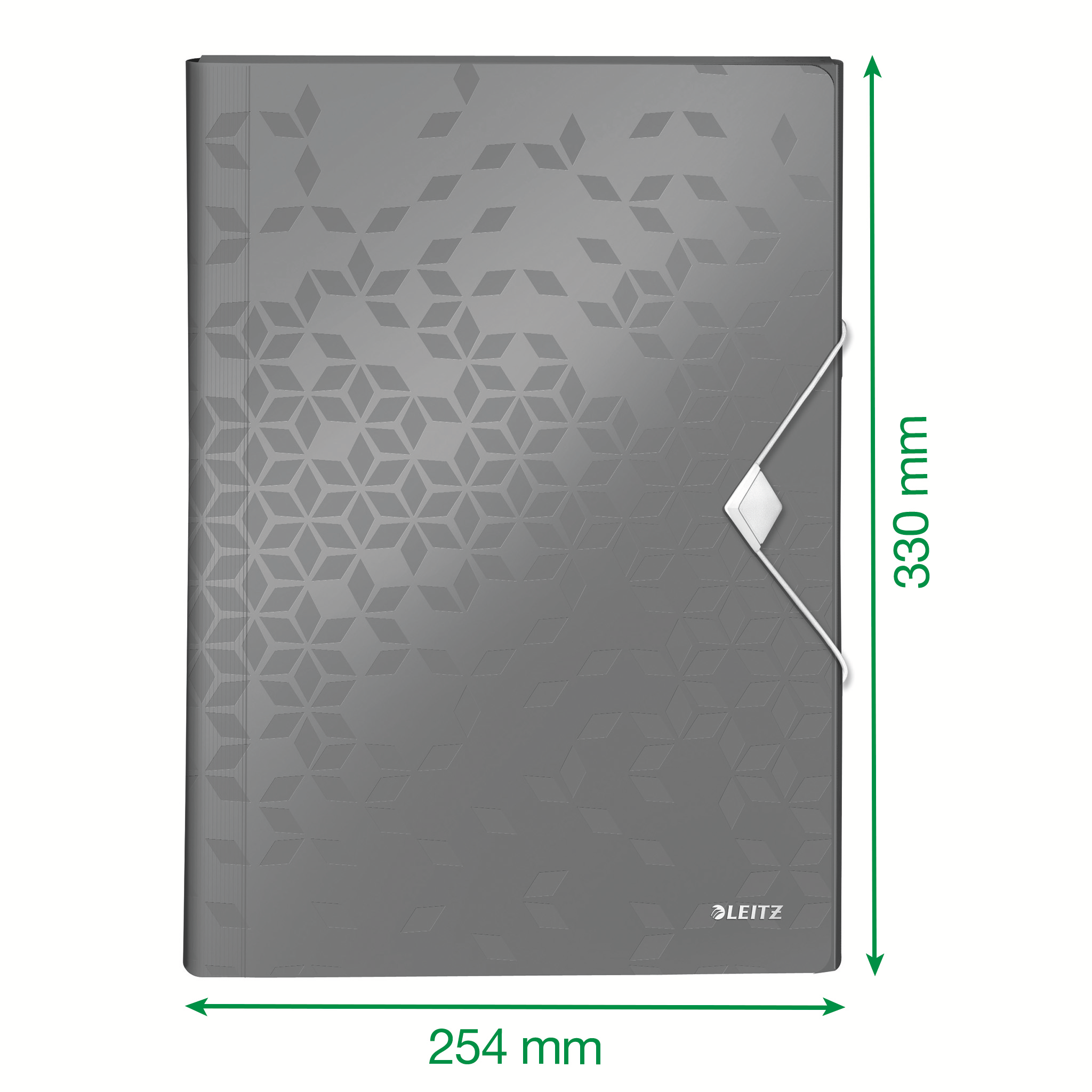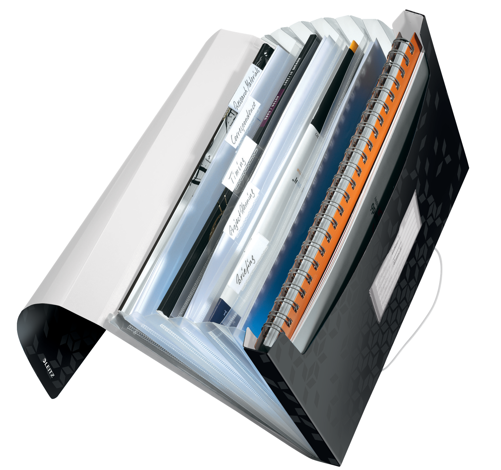 Langtidsholdbar premium PP kvalitet. 6 ekspanderbare rum. Iøjnefaldende farve og stilfuld præget overflade. A4.
