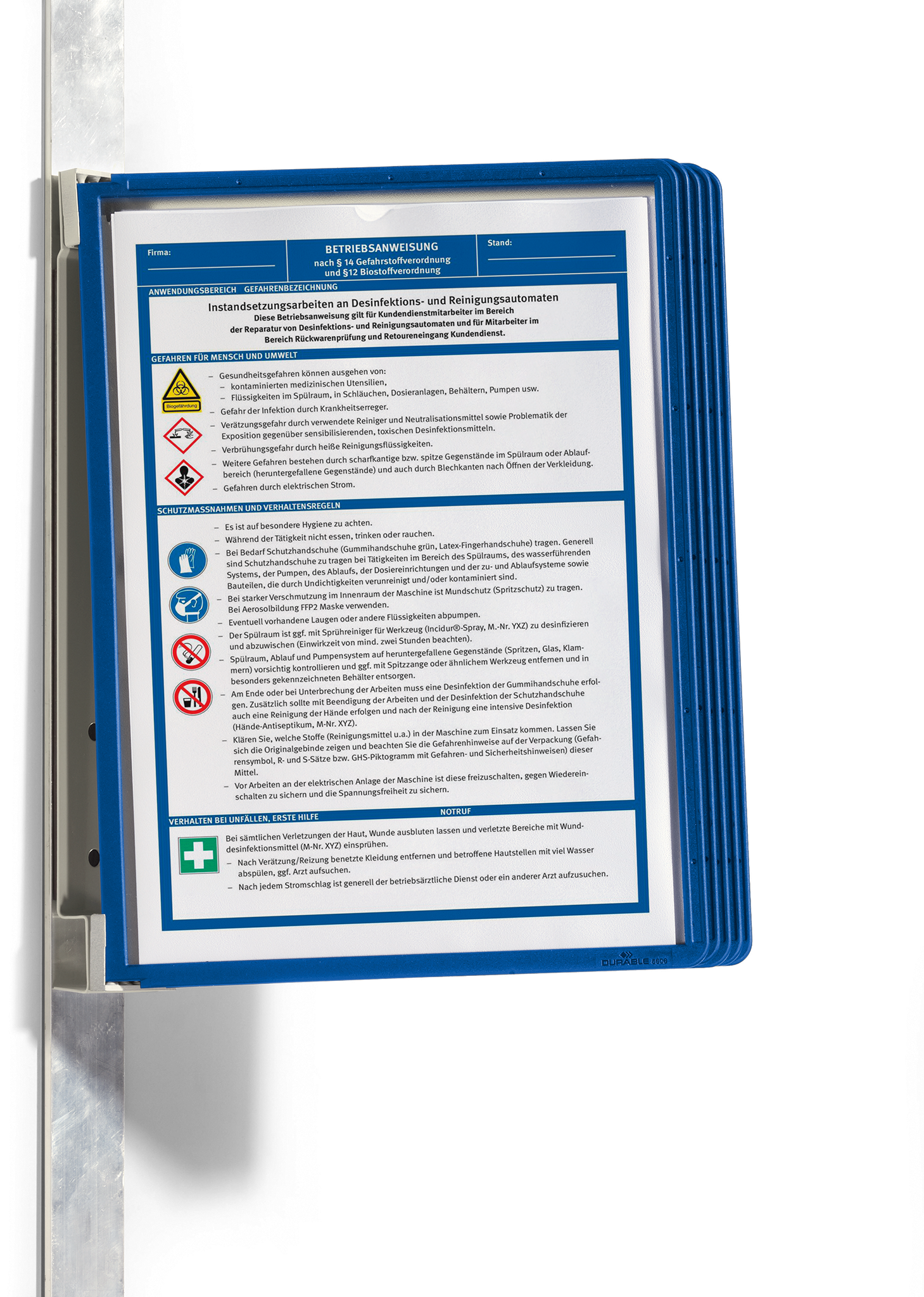Komplet registersystem med magnetisk vægstativ og 5 stk A4-lommer i polypropylen.