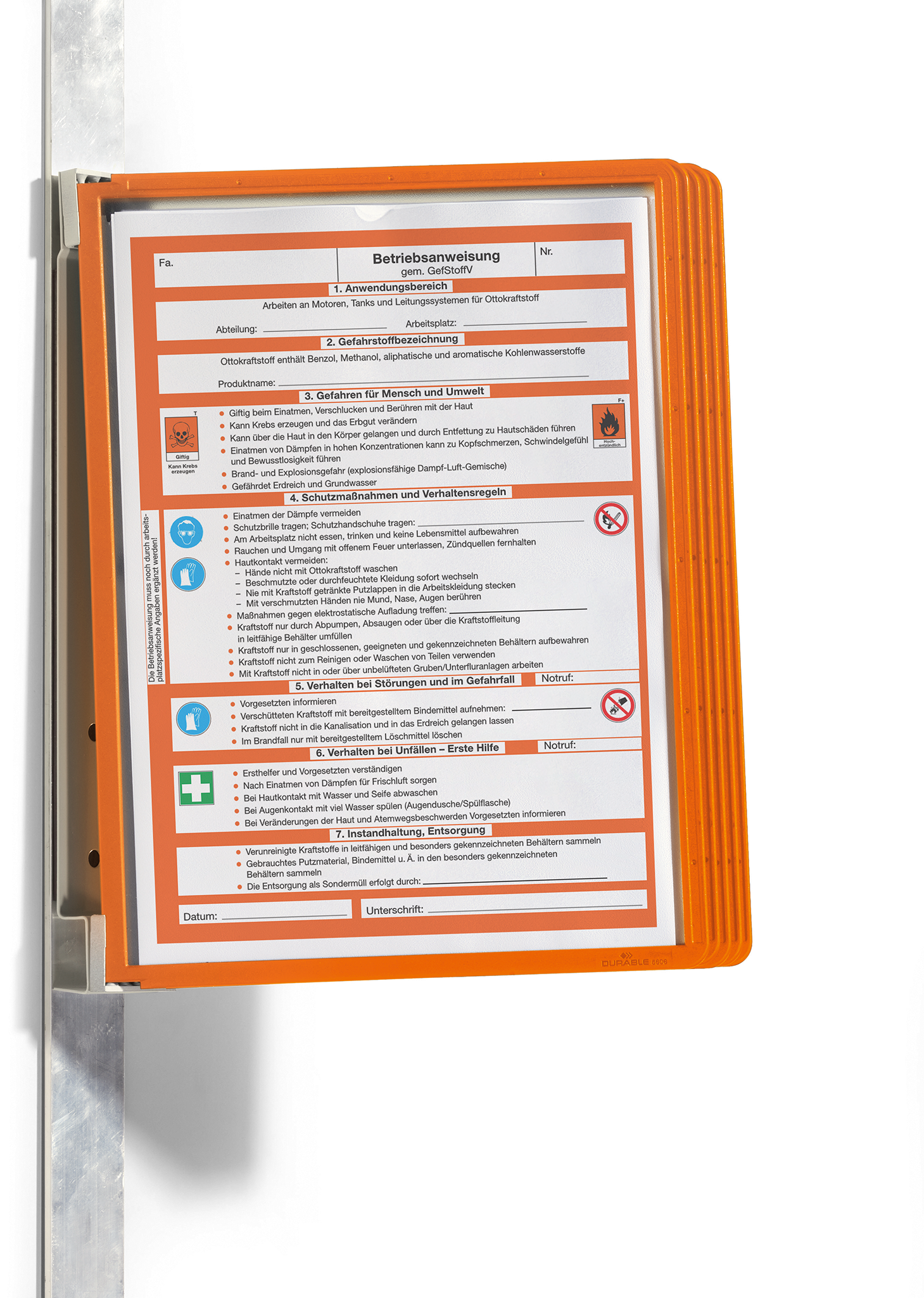 Vægstander VARIO® af metal med en stærk magnet på bagsiden for nem montering på metaloverflader f.eks. hylder, pallereoler, whiteboards etc. Leveres komplet med 5 stk. sort SHERPA®-lommer.5 års garanti hvis produktet har en defekt som skyldes en fabrikationsfejl. https://www.durable.dk/service/durable-garanti/sherpavario-garanti.html