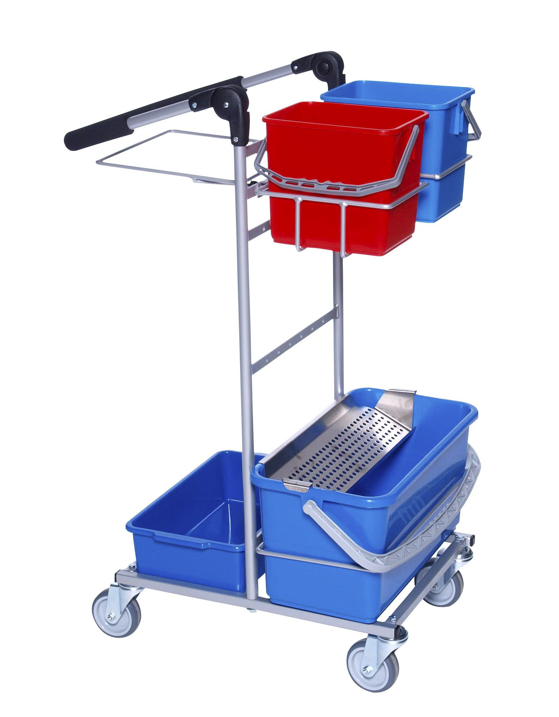 Har du brug for en praktisk rengøringsvogn til opbevaring og transport af dine rengøringsmidler, spande, klude m.m., så er denne vogn et godt valg. Rengøringsvognen har et behageligt håndtag, der gør det nemt at skubbe eller trække vognen rundt, hvor der er brug for den.