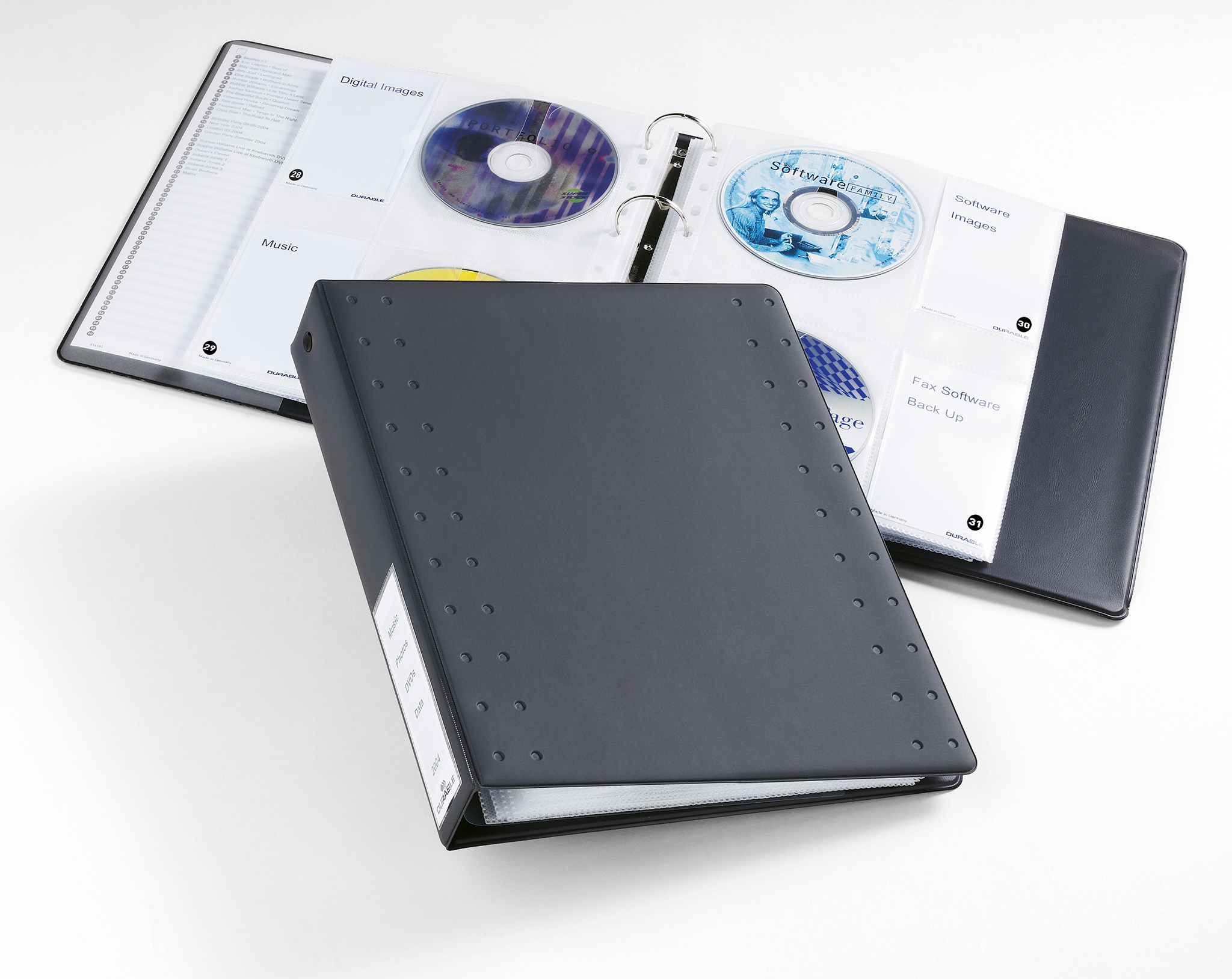 Ringbind med 10 lommer til opbevaring af 40 CD?er/DVD?er Med printbart indstik til rygetiket og registerblad Lommer med fleeceindlæg og 4 ekstra lommer til de medfølgende indstik Kan udvides til 15 lommer til arkivering af 60 CD?er/DVD?er med artikelnr. 5222