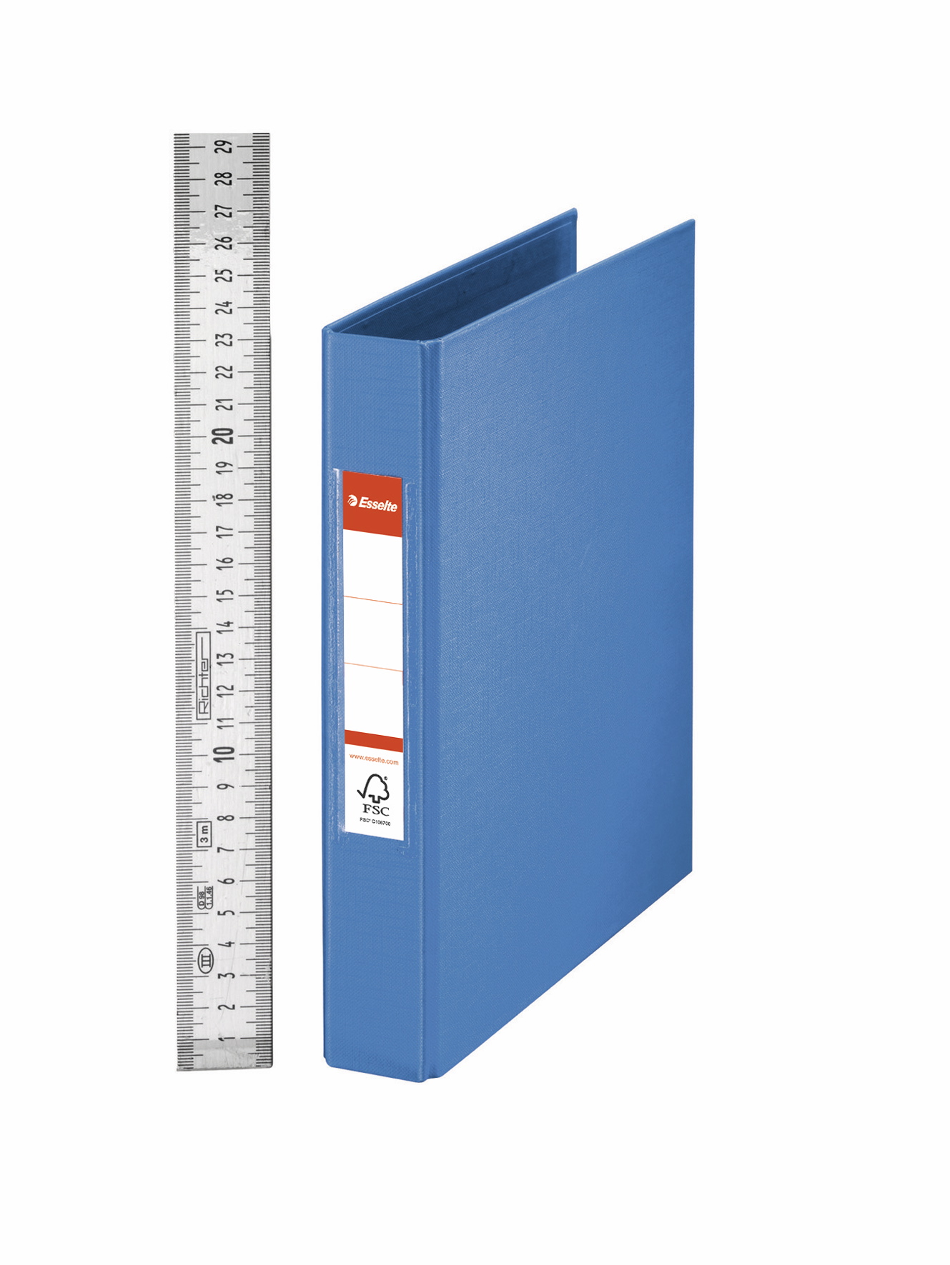 Blåt ringbind fra Esselte der passer til dine A5 papirer. Ringbindet har 2 ringe til fastholdelse af indholdet.