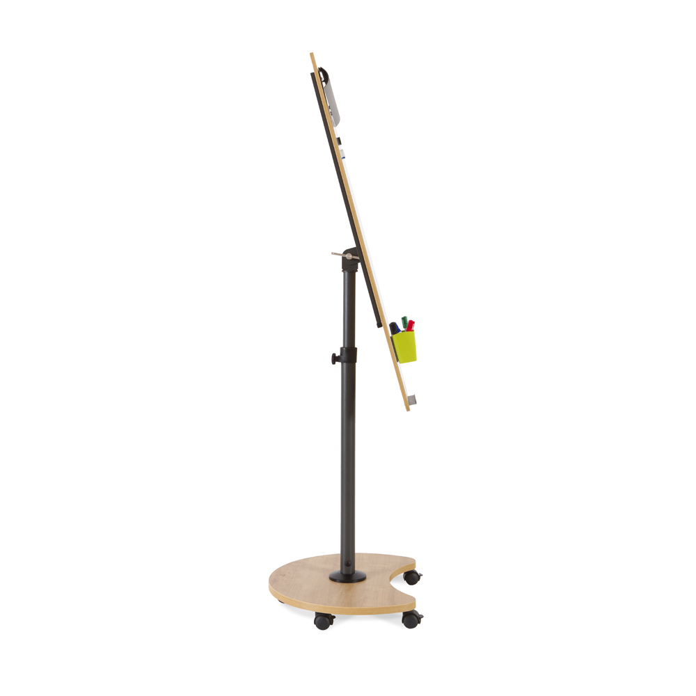 Rocada mobile Flipover der kan omdannes til bord.Højdejusterbar, transformerbar til bord, Flipchart whiteboard på hjul, med natur detaljer.Mobiltavle med et unikt og patenteret rotationssystem, der gør det muligt at konvertere tavlen til et bord.Denne mobile, transformerbare flipchart er fra det spanske kvalitetsmærke Rocadas Natural-serie.NATURAL serien fra Rocada er inspireret af naturen, flot og unikt design, kraftig kvalitet, der giver både pæn og solid støtte til møder og præsentationer.Velegent i mødelokaler, skoler og kontorer. Tavlen kan hurtigt og nemt omdannes til et praktisk skrivebord, f.eks. til stående arbejde eller til placering af PC o.lign. under præsentationer.Rocada mobil flipchart med magnetisk whiteboard tavle i lakeret stål, med detaljer i melamin med flot træstruktur.Slidstærk whiteboardoverflade, lavet af 0,8 mm. stål der sikre lang levetid, giver ekstra præsentationsmulighed.Skriv på tavlen med en whiteboard- eller glastavle marker.Aftørres nemt med en tavlesvamp eller klud.Udfoldelige, magnetiske sidearme, der giver mulighed for ekstra papirark.Lodret stålrør Ø 50 mm. med teleskoprør.Metallisk rotationssystem.Justerbar så højden kan tilpasses brugeren.Hjul med bremser.Træbagkonstruktion der gør den mere æstetisk, også fra bagsiden.Pennebakke medfølger.Standard ophæng til flipoverblok.