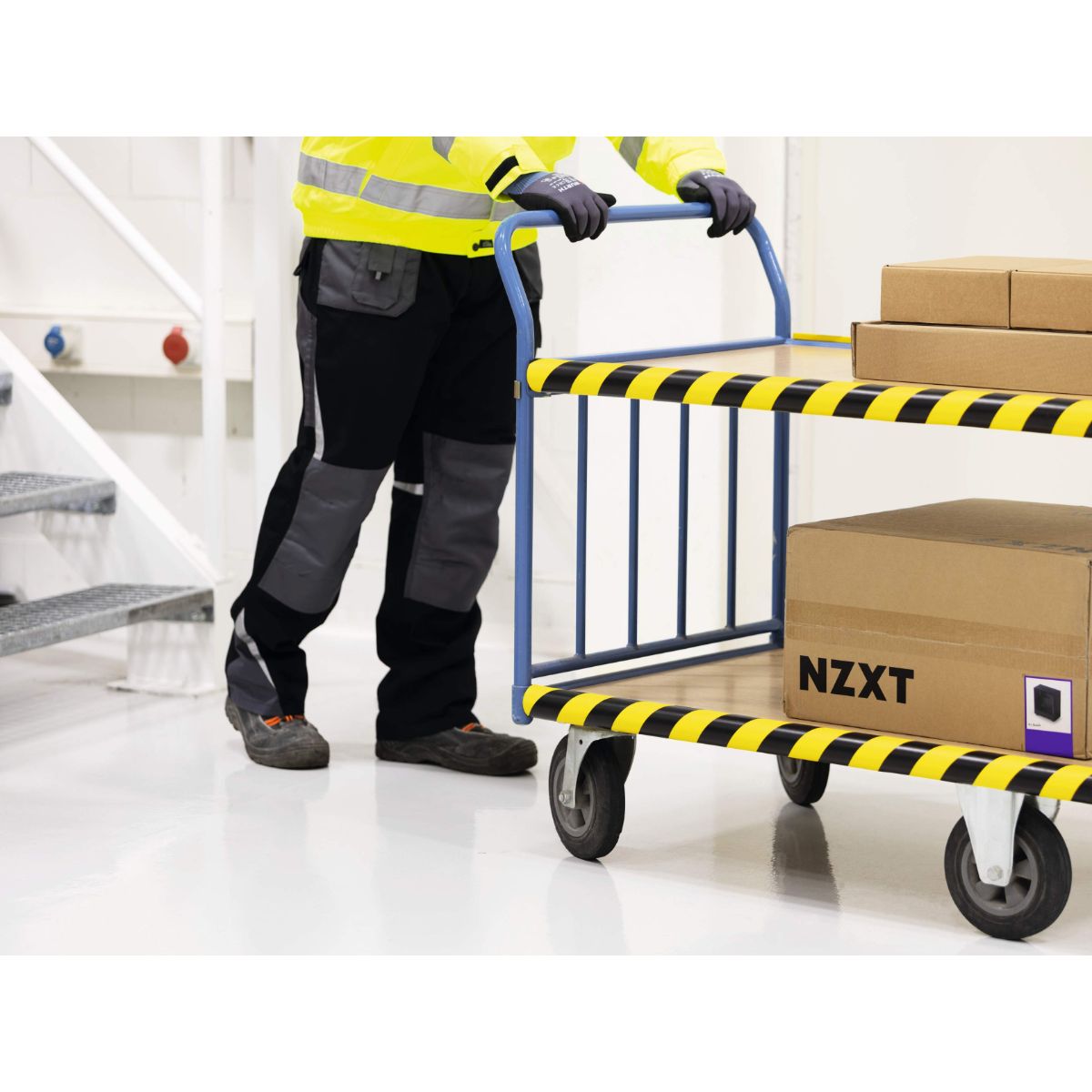 Advarsels- og beskyttelsesprofiler som denne rørbeskytter anvendes i industrier og andre indendørs miljøer for at beskytte personer, køretøjer og møbler i tilfælde af mindre kollisioner. De sort/gule striber advarer mod rør og stolper, og polyuretanskummet, som beskyttelsesprofilen er fremstillet af, er stødabsorberende. Den selvklæbende rørbeskyttelse skæres til i den ønskede længde med en skarp kniv. Stærk, selvklæbende overflade af god kvalitet, der klæber på f.eks. metal, træ, pap og fliser med bedste resultat ved en temperatur på 10-30 °C. Farvenuancer i henhold til ASR A1.3 svarende til RAL 1004/9003 (signalgul/signal-sort). Testet i henhold til brandklassificering DIN EN 13501-1 klasse E. Temperaturbestandig fra -30°C – + 70°C. Længde 1 m. Profilen er 50 mm udvendig bredde, 30 mm indvendig bredde. Tykkelse 10 mm.