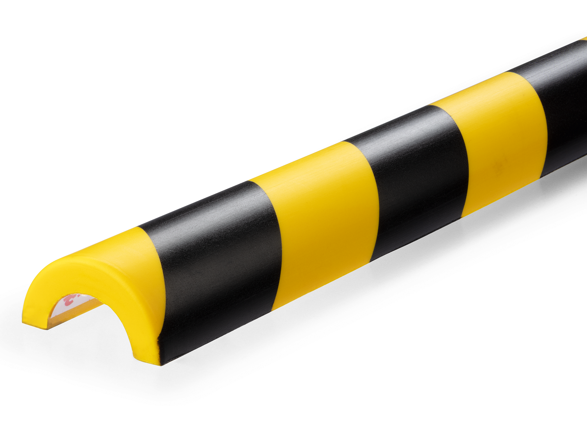 Rørbeskytter p30Selvklæbende beskyttelsesprofil til rør med stødabsorberende effekt. Sort/gule striber advarer og henleder opmærksomheden på mulige risici.