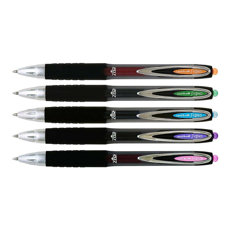 Uni-ball Signo UMN-207 er en rollerpen med ergonomisk gummigreb. Skaftet er gennemsigtigt, så du nemt kan se, hvor meget blæk der er tilbage. Kuglen er 0,7 mm.