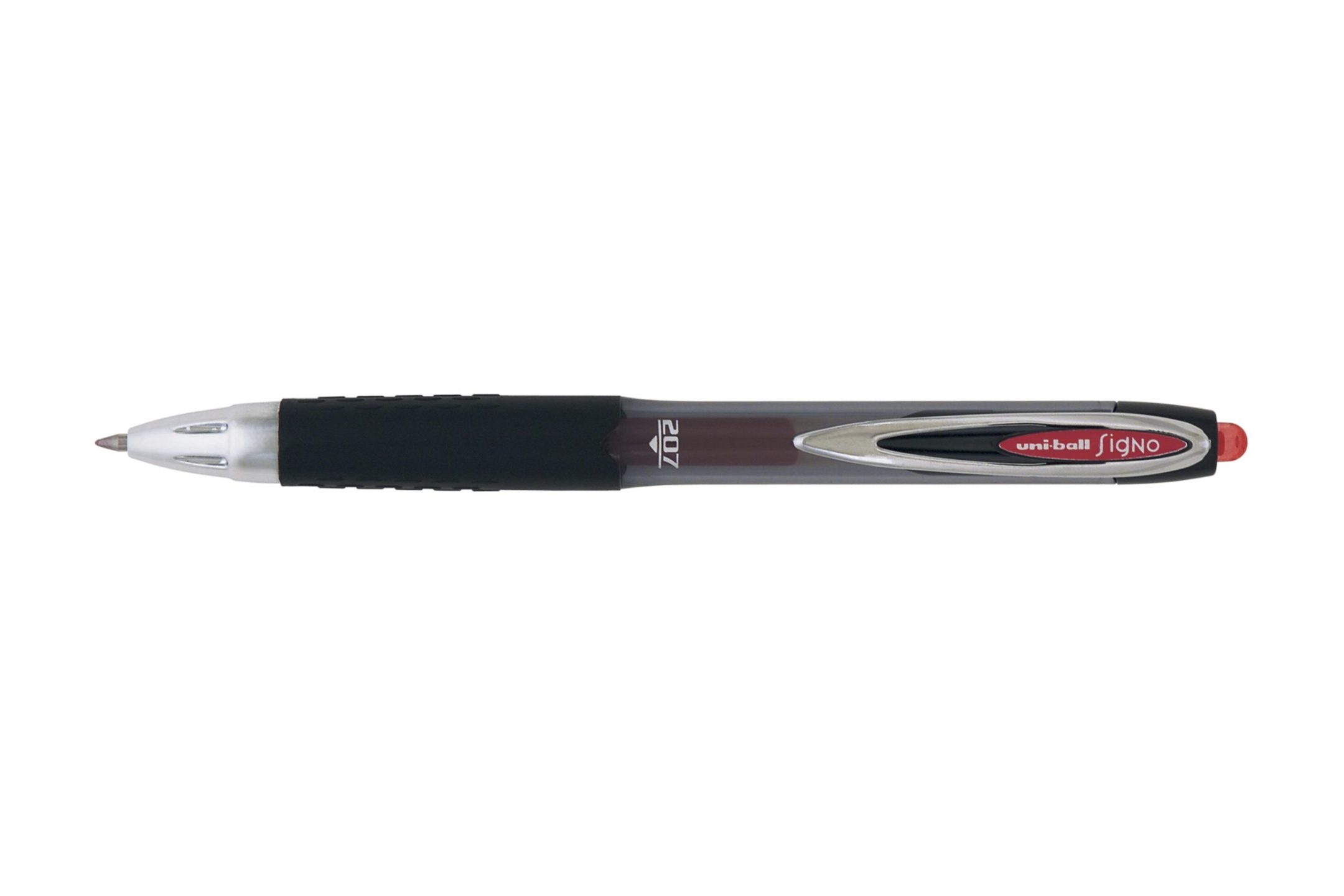 Uni-ball Signo UMN-207 er en rollerpen med ergonomisk gummigreb. Skaftet er gennemsigtigt, så du nemt kan se, hvor meget blæk der er tilbage.