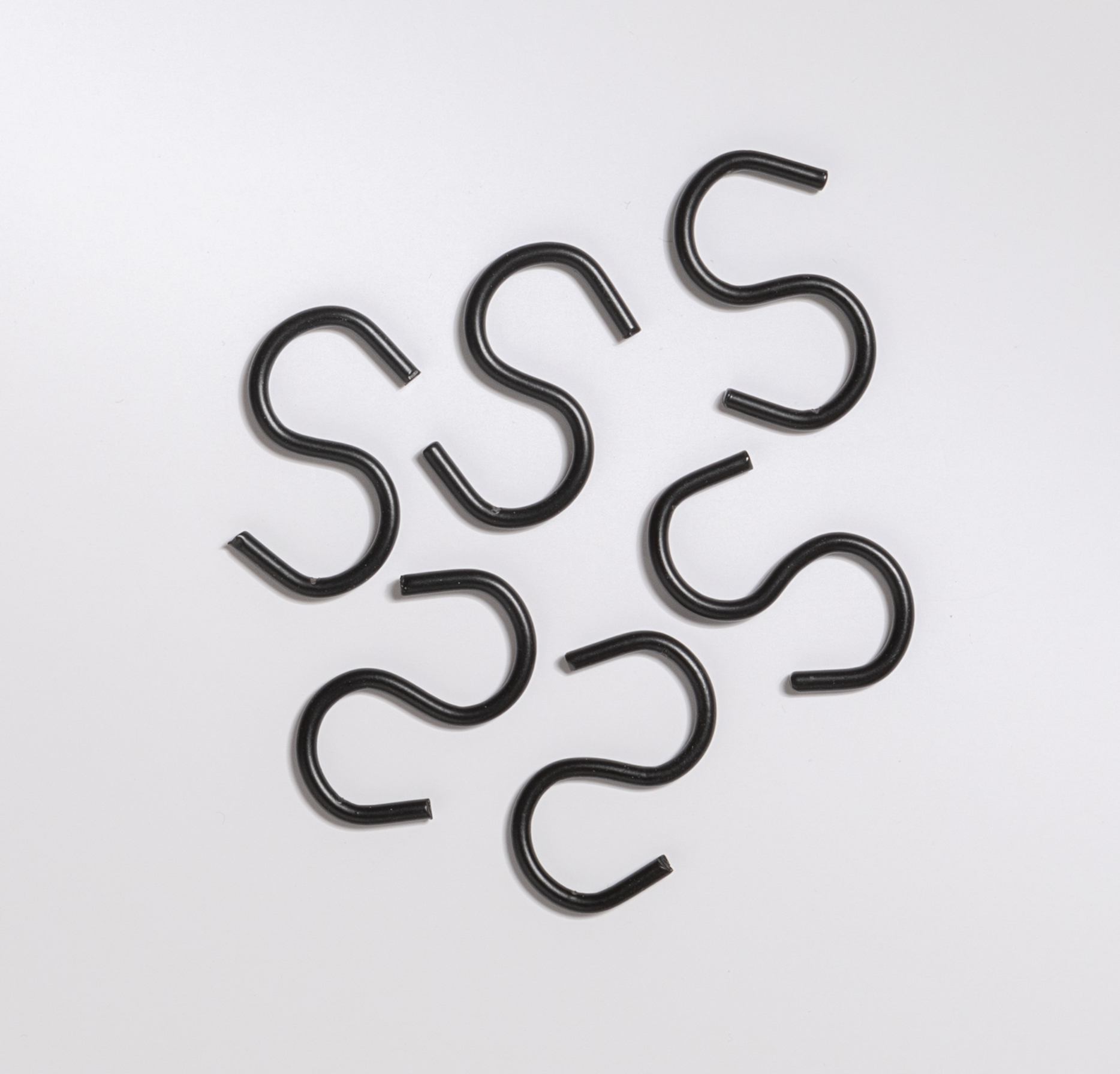 S-kroge i sort metal Små sorte s-kroge i sort metal. Hver pakke indeholder 6 stk. sorte s-kroge, som måler 4 cm. Disse metal S-kroge er særligt velegnede til at hænge genstande på gitteropslagstavler. Med disse små s-kroge kan du nemt organisere og holde styr på f.eks. nøgler, sakse, kontortilbehør, clips og andre småting, der skal være lige ved hånden. Den klassiske S-form gør det nemt at flytte dem rundt, så du kan tilpasse din tavle efter behov. S-kroge kan anvendes til mange andre formål, og kan derfor bruges forskellige steder i hjemmet. Med deres elegante sorte finish passer s-krogene perfekt ind i moderne indretning og skaber et stilrent, organiseret udtryk – uanset om det er i kontoret, køkkenet eller entreen.