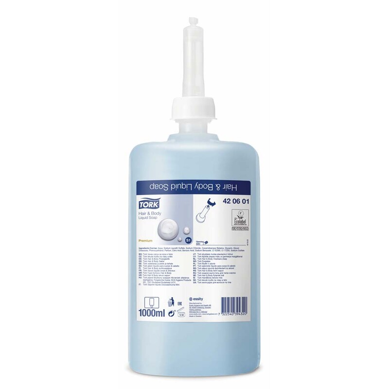 Frisk og mild krops- og hårshampoo. Tork Mevon er allergitestet og parabenefri. Passer til Tork S1 Box – en kompakt plastdispenser til flydende sæbe. Indeholder 1000 doseringer pr. stk.