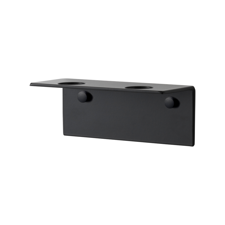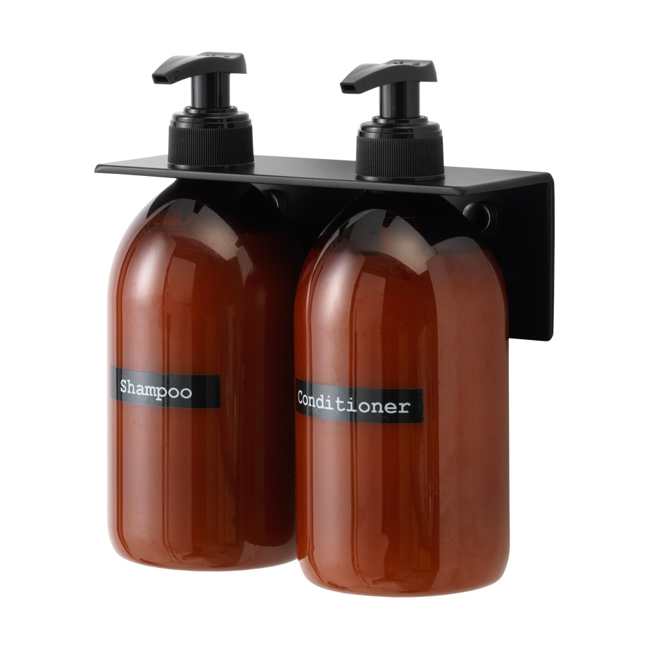 Sort sæbeholder til væg 2 flaskerMed en sæbeholder til væggen kan du frigøre plads omkring håndvasken eller i badet og sørge for, at din sæbe, shampoo eller balsam altid er lige ved hånden. Denne sorte sæbeholder er designet til to sæbeflasker og er fremstillet i rustfrit stål. Materialet er modstandsdygtigt over for fugt og nemt at holde rent, hvilket gør sæbeholderen ideel til vådrum. Sæbeholderen monteres nemt med to skruer, og de medfølgende dækpropper sørger for, at skruerne er skjult, så udtrykket forbliver elegant og minimalistisk.Denne væghængte sæbeholder passer perfekt sammen med NAGAs øvrige badeværelsestilbehør i rustfrit stål.Mål: L: 15,5 cm. D: 7,5 cm. H: 5,5 cm.Hullet måler 2,8 cm i diameter