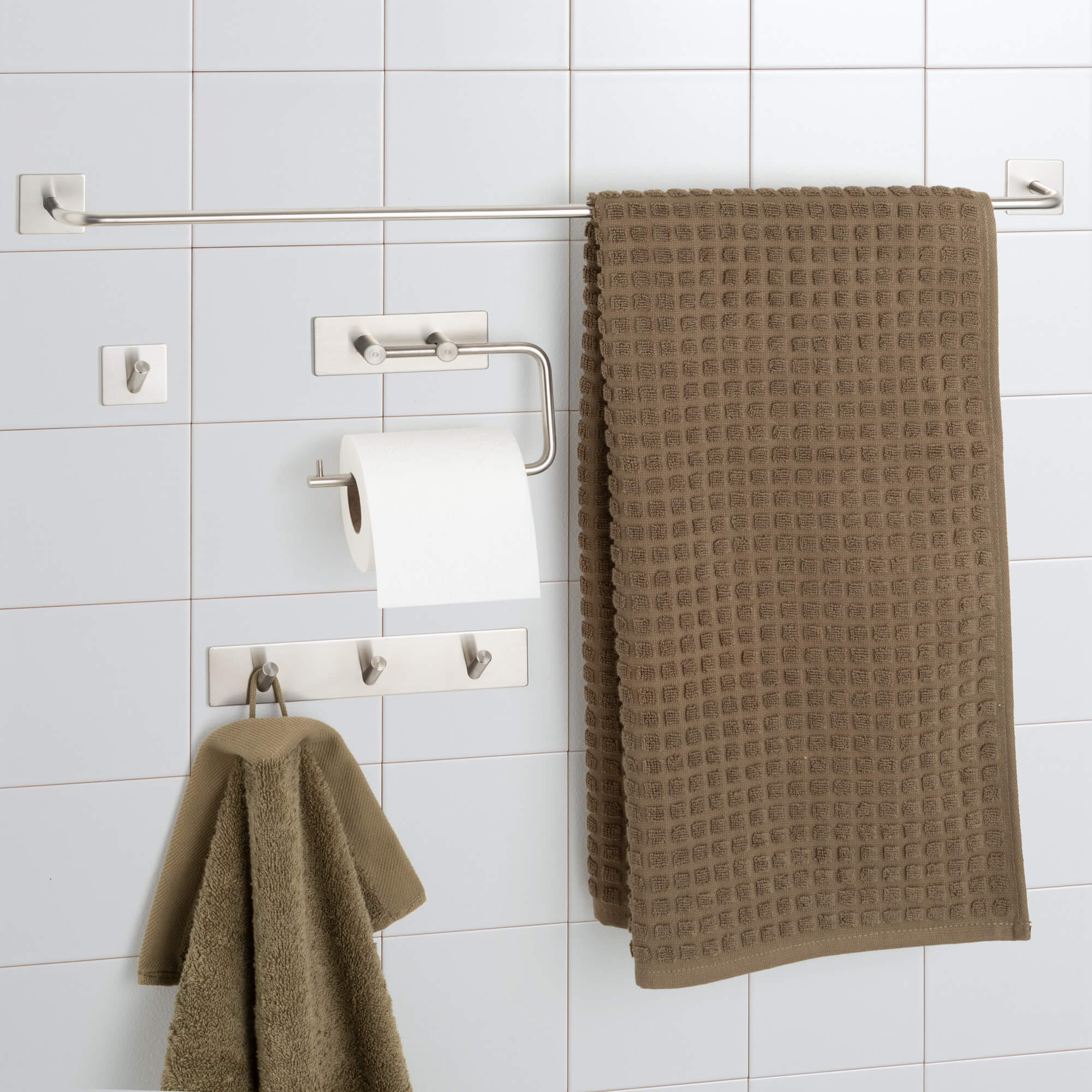 Self-adhesive toilet roll holder, 15,5 x 10,5 cm. Brushed chrome