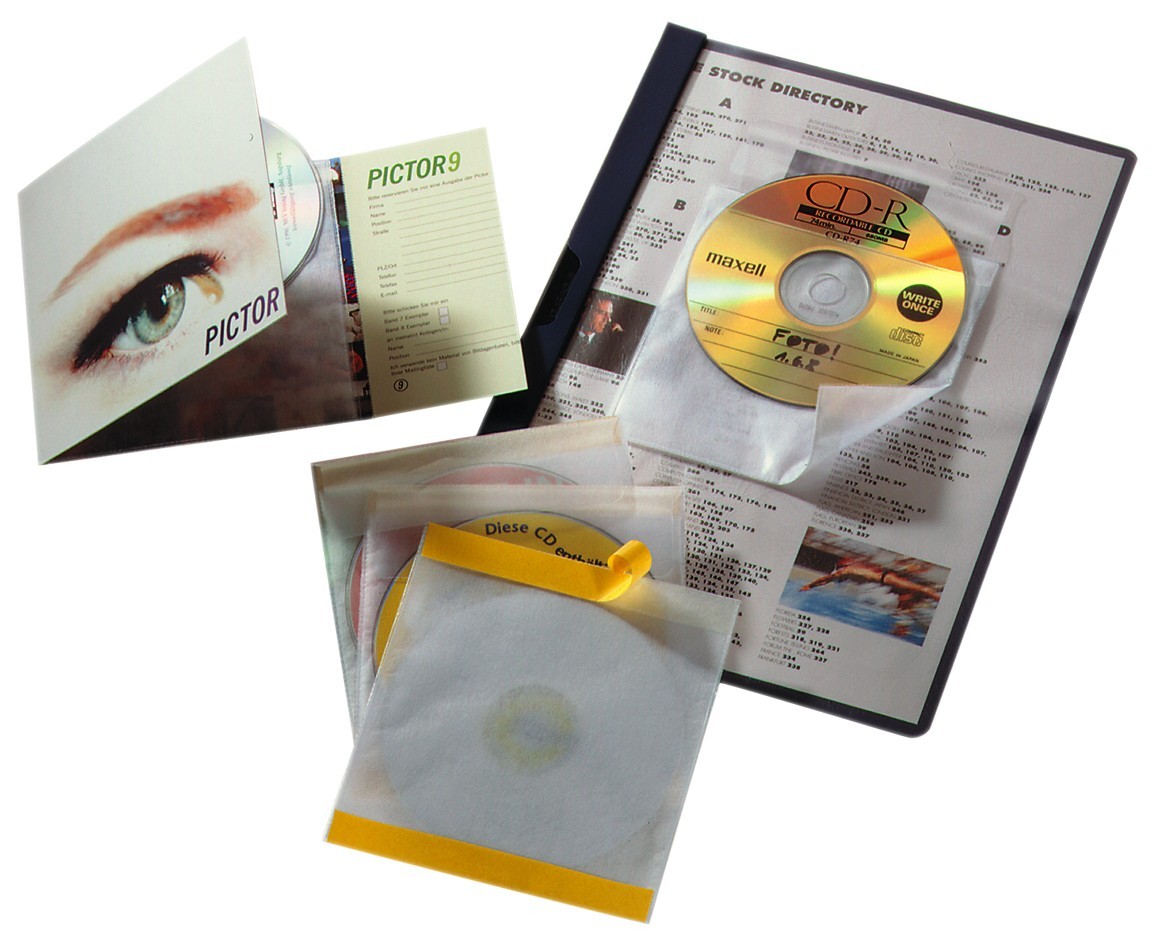 Selvklæbende og polstret CD / DVD lomme af polypropylen med låsefane. Plads til en CD/DVD + hæfte/brochure eller to CD/DVD. Ideel til brug i mapper, præsentation osv.
