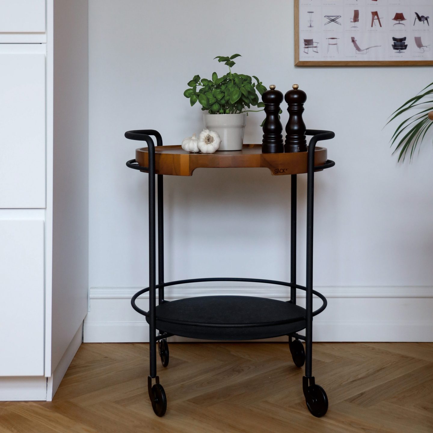 SACKit Serving Table er et eksklusivt bakkebord i smukt dansk design. Det eksklusive rullebord fungerer perfekt som barbord eller som et smukt hjørne- eller sofabord. Bakkebordet er designet i samarbejde med den anerkendte danske designduo Steffensen & Würtz, som har lagt vægt på at skabe et design, som er enkelt uden overflødige detaljer.