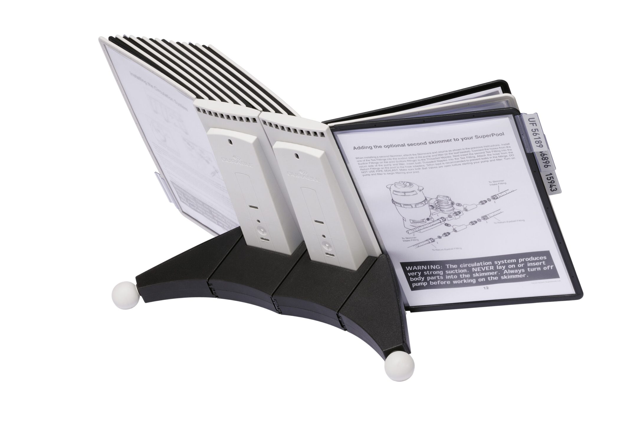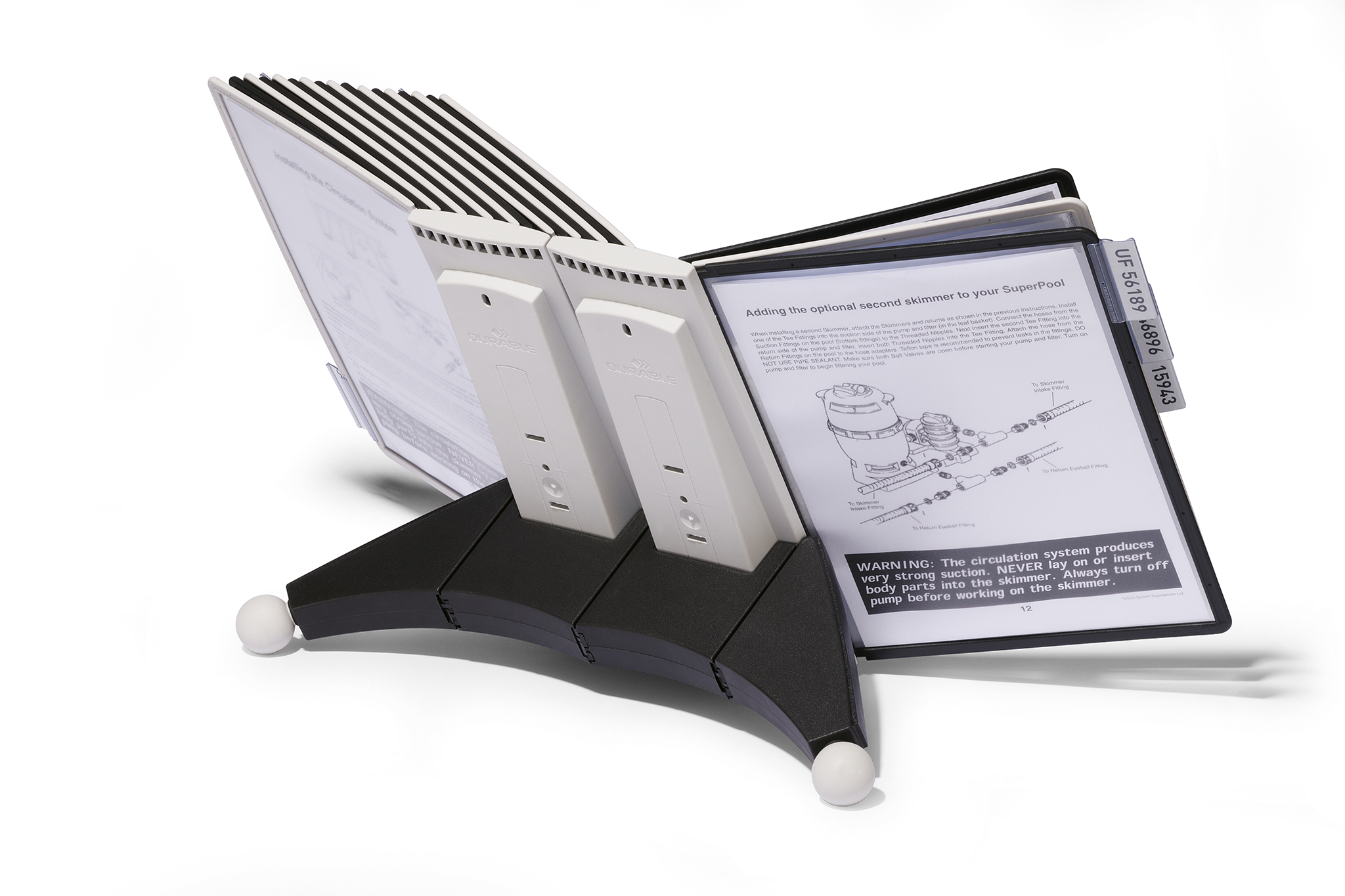 Find informationer nemt og hurtigt i en præsentabel fremvisning ved hjælp af displaysystemet SHERPA®. Oversigtsystemet leveres komplet med 20 stk lommer A4 i farverne sort og grå i refleksfri polypropylen plast. Base af plast inklusiv kugleben. Kan udvides med en base uden lommer (fås i flere farver varenr. 5606 eller 5607) og kugleben (varenr. 562457). Leveres med etiketholder. 5 års garanti hvis produktet har en defekt skyldes en fabrikationsfejl. https://www.durable.dk/service/durable-garanti/sherpavario-garanti.html