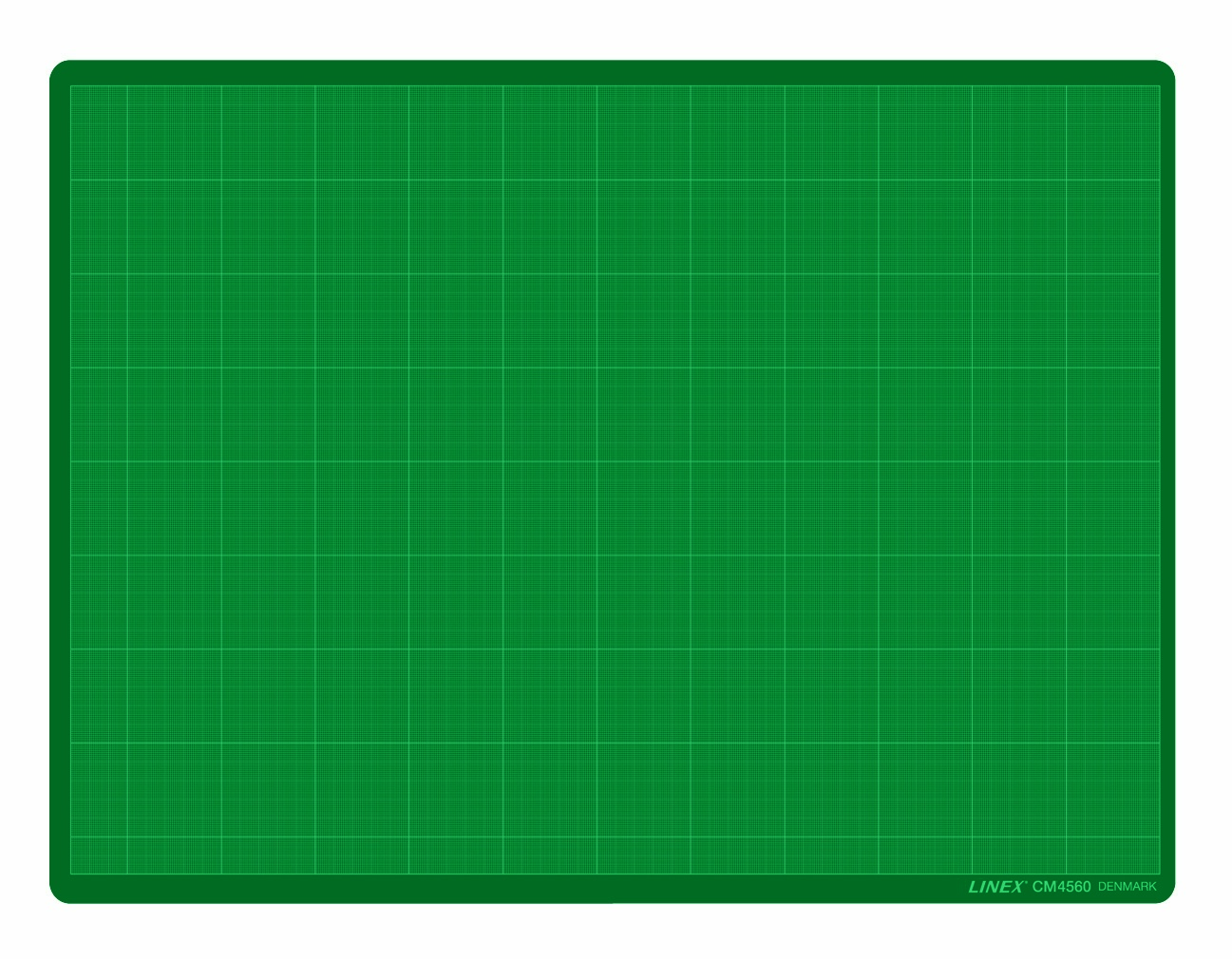 Linex skæreplade med skærelag på begge sider. Den ene side har millimeterangivelser. Skærepladen måler 45X60 cm, hvilket passer til papir i A2 størrelse.