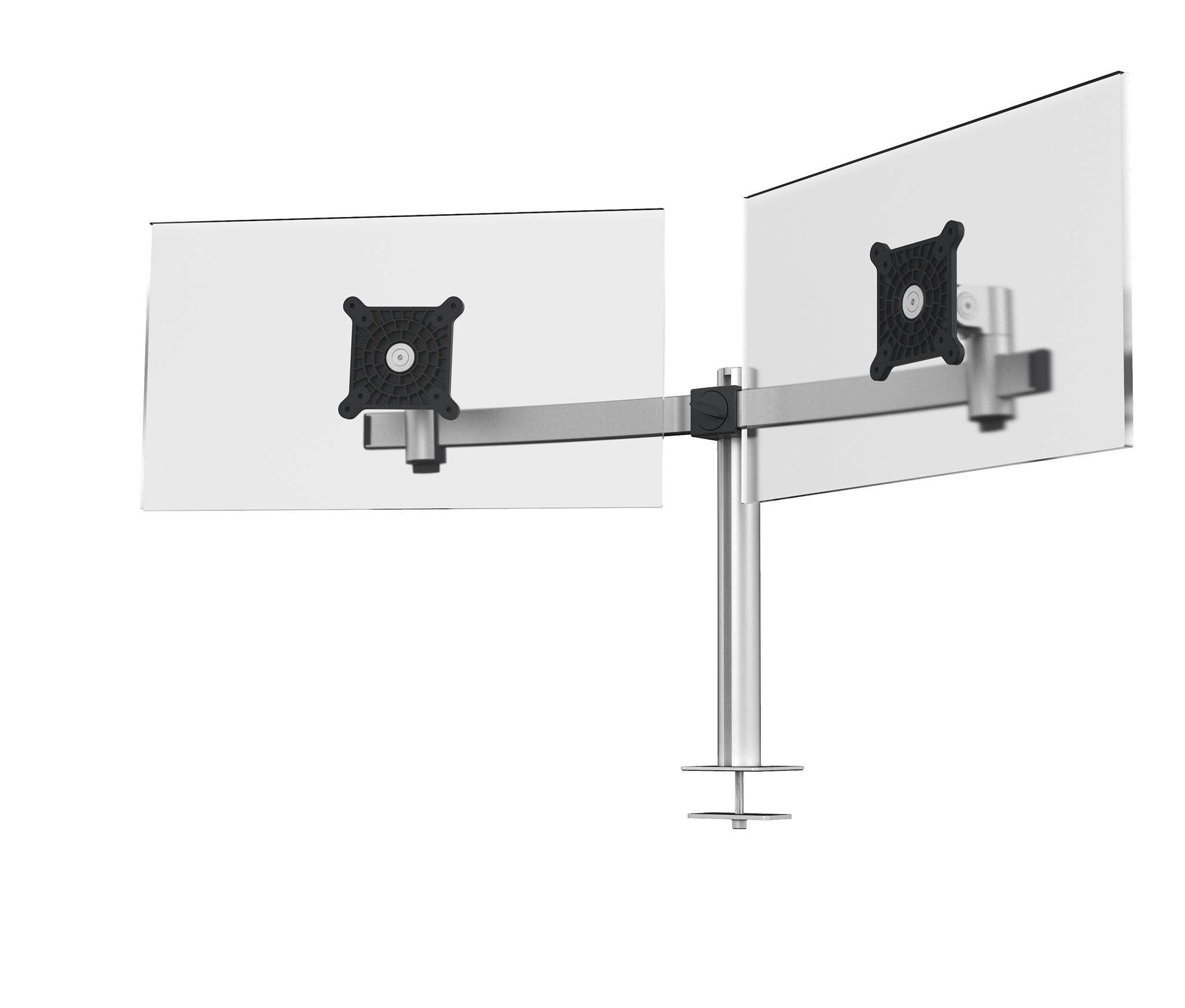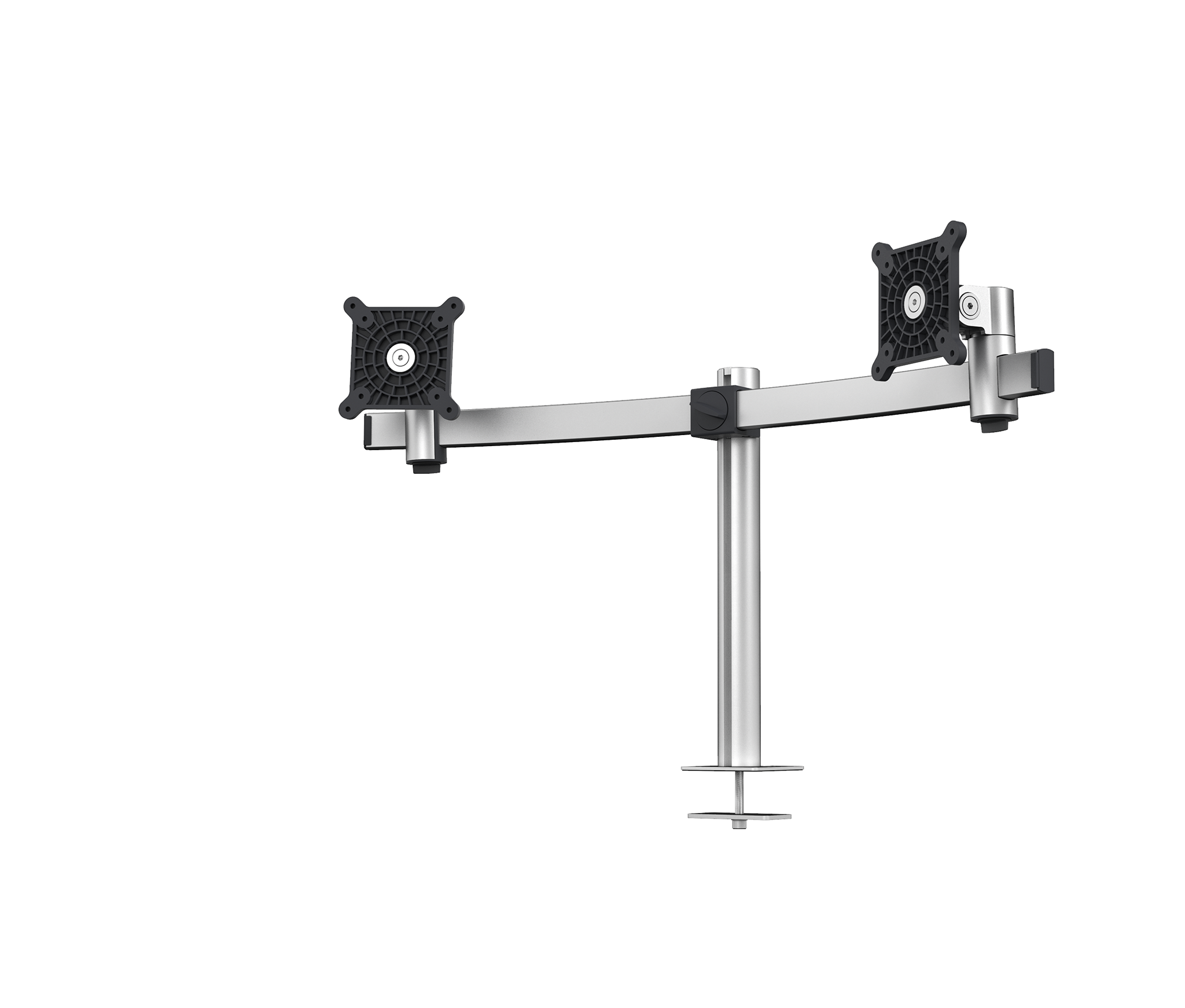 Uanset om det er på arbejdet eller hjemme, tilbringer de fleste mennesker meget tid foran en computerskærm. Sundhed og velvære spiller derfor en stor rolle ved skrivebordet. Monitor mount PRO for 2 screens, through-desk – Den bevægelige skærmholder til bord fra DURABLE giver en særligt fleksibel løsning til den ergonomiske arbejdsplads. Nem at anvende: Justerbar bordmontering af skærmholder til 2 skærme Skærmholderen består af en bordsøjle, tværstiver og 2 glidbare, drejelige VESA monteringsbeslag Individuelt justerbar højde, hældning og retning for skærmen Ekstra nem montering af skærmen ved at klikke den fast i skærmholderen Sikkerhedssystem, der beskytter fingrene mod fastklemning mellem bevægelige dele Inkl. 5 kabelklemmer, der kan fastgøres individuelt, og som sikrer orden i kabelføringen Kvalitetsgaranti: Materialer af høj kvalitet giver lang produktlevetid: Fremstillet af aluminium og kvalitetsplastik Miljøvenlige i henhold til ISO 14021: 100 % genanvendelig, fremstillet af op til 60 % genbrugsmateriale Elegant design giver mulighed for anvendelse i forskellige omgivelser Patentanmeldt monteringssystem 10 års garanti https://www.durable.dk/service/durable-garanti/monitor-mounts-guarentee.html Fremstillet i Tyskland: Monteringsbeslagene af høj kvalitet er fremstillet i Tyskland. Plastikdelene er produceret efter de højeste kvalitetsstandarder på DURABLEs produktionsanlæg i Nordrhein-Westfalen. Afsluttende montage udføres på DURABLEs fabrik i Kamen Tekniske specifikationer: Skærmholderen benyttes til skærme fra 21 til 27 tommer (53,34 til 68,58 cm) og 3 til 8 kg Med VESA-montering 75 x 75 mm eller 100 x 100 mm (International Standard for Video Electronics Standards Association for Screens and Monitors) 360° drejelig skærm til arbejde i portræt- eller landskabsformat Skærmen kan vippes 110-85°opad, 25° nedad Skærmholderens støttearm er højde justerbar fra 50-340 mm Skærme kan flyttes og fastgøres hvor det passer på tværstiveren Beslag til kabelgennemføring til bordtykkelser fra 14-44 mm Enkel installation: Fastgørelsesskrue til bordbor med en diameter på 60-80 mm fastgøres med en unbrakonøgle (medfølger) Mål: 780 x 445 x 190 mm (B x H x D) Tilgængelig fra April 2020