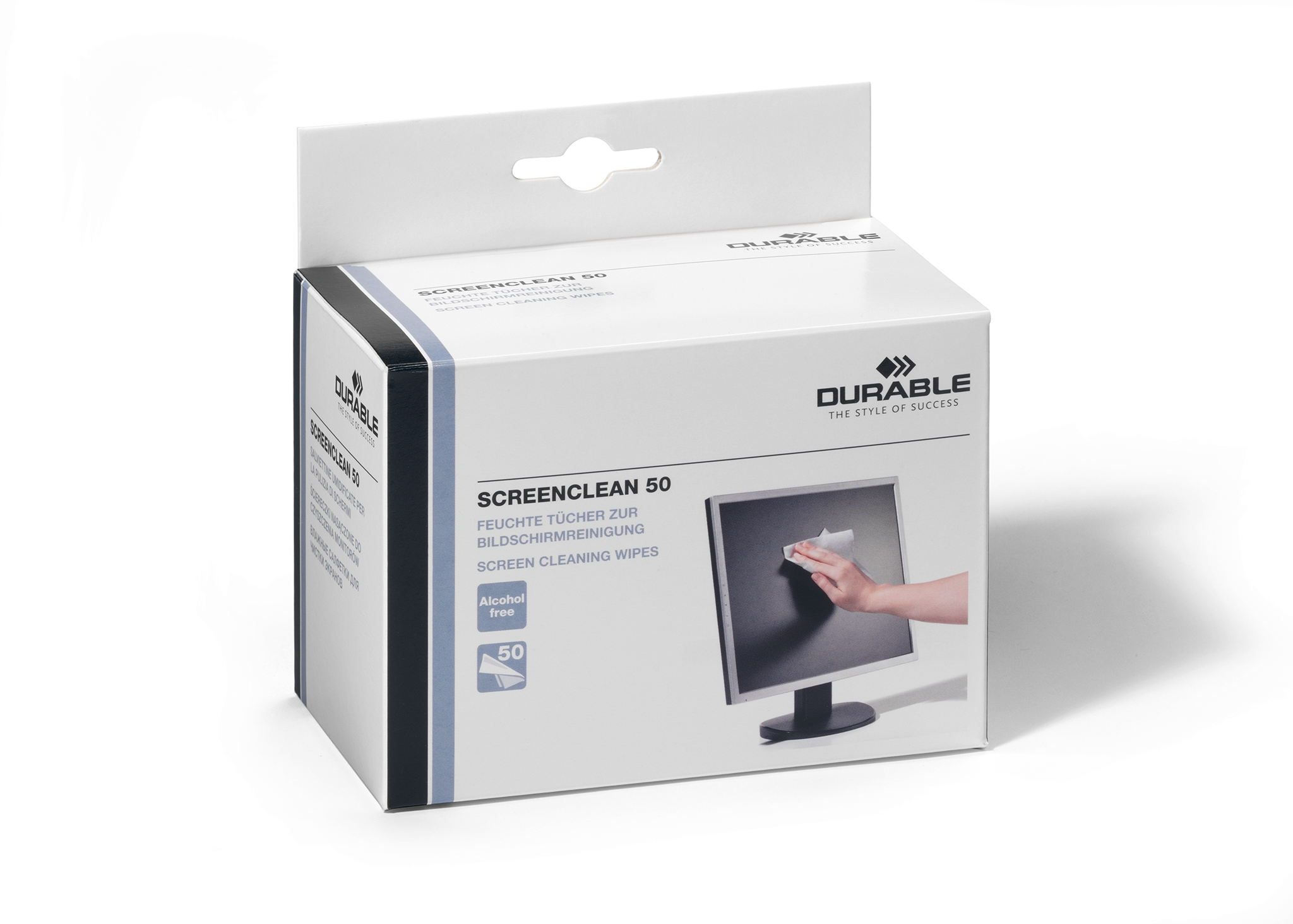 Fugtige individuelt pakket renseservietter SCREENCLEAN til rengøring af skærme. 1 æske/50 stk