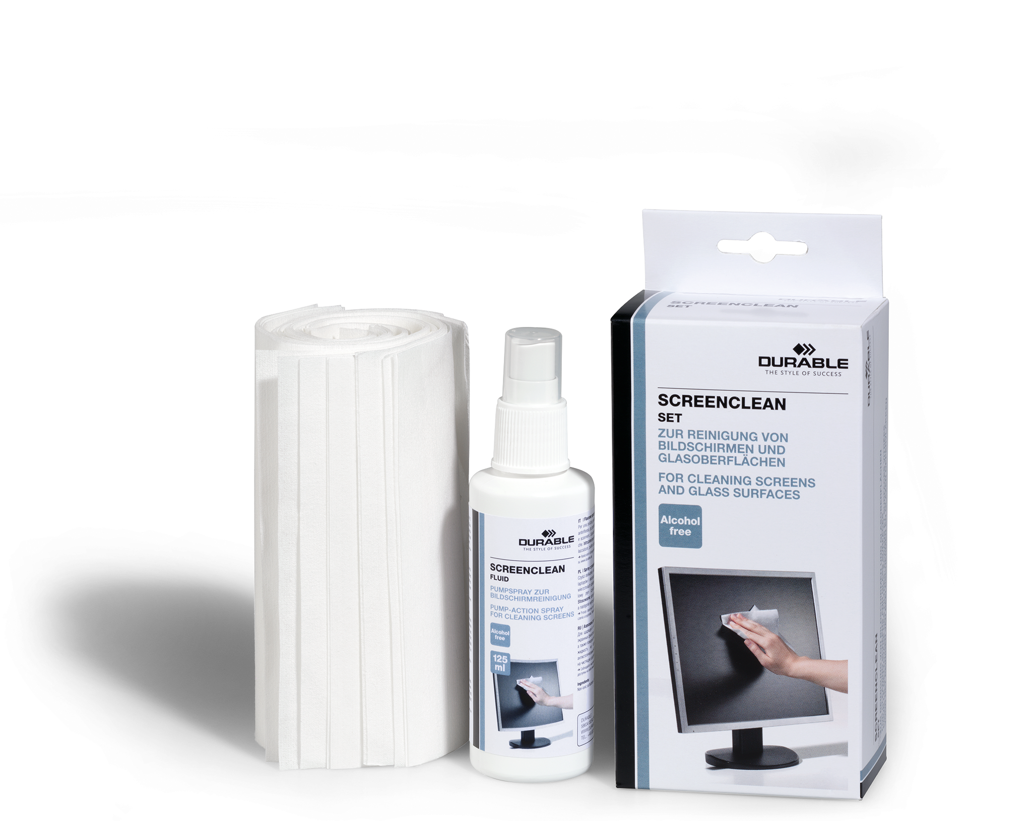 SKÆRMRENS DURABLE SCREENCLEAN SÆT – RENSESPRAY + 20 SERVIET.