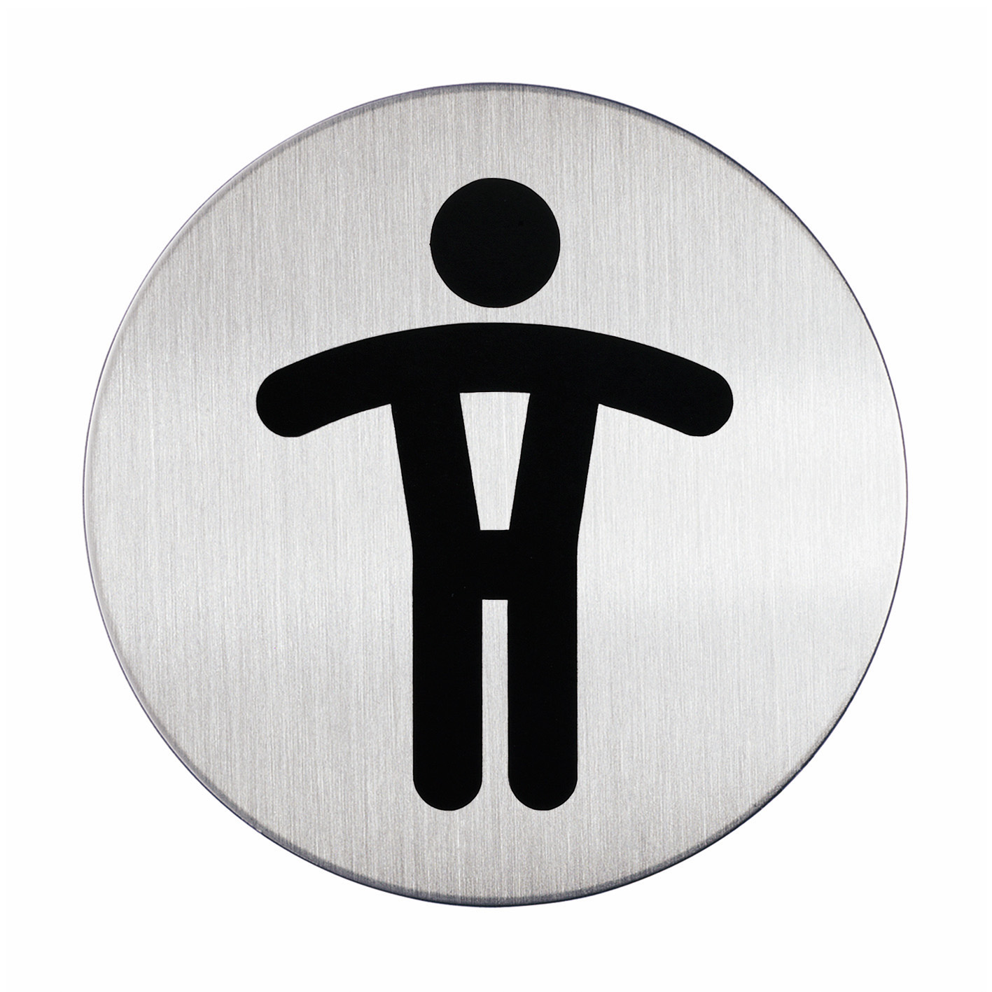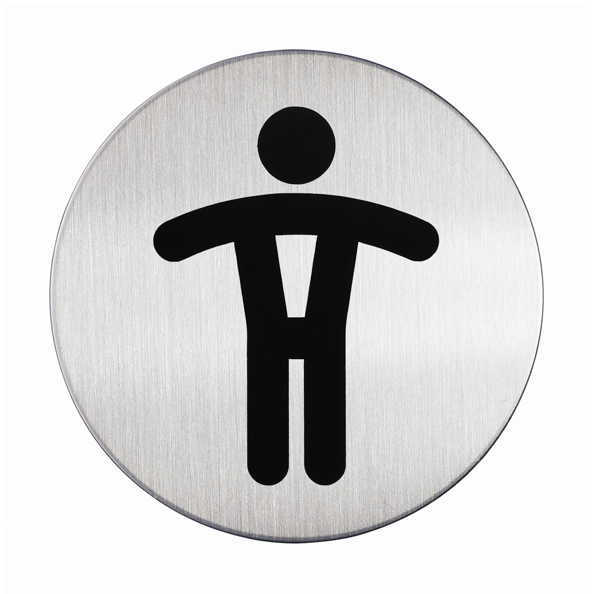 Rund skilt WC Herre toilet Symbolskilt af børstet rustfrit stål, der er ridsefri. Selvklæbende puder medfølger. Ø 83 mm