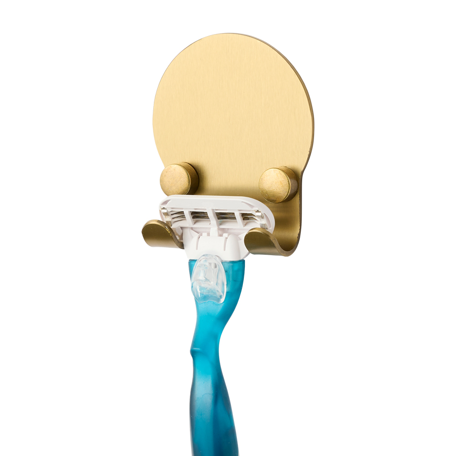 Holder til skraber, messinglookDenne stilrene holder til skraber er den perfekte løsning til et velorganiseret badeværelse. Uanset om du barberer dig i badet eller ved spejlet, kan du placere din barberskraber lige dér, hvor du har brug for den, så den altid er inden for rækkevidde. Samtidig opbevares skraberen hygiejnisk og holdes fri af våde overflader, hvilket er med til at bevare klingens skarphed og forlænge skraberens levetid.Holderen er designet til at passe til de fleste skrabere og er fremstillet i rustfrit stål med en flot finish i børstet messinglook. Den er modstandsdygtig over for fugt, hvilket gør den særligt velegnet til badeværelsets fugtige miljø.Holderen til barberskraber monteres nemt på væggen med enten dobbeltklæbende tape eller skruer (begge dele medfølger). Du kan desuden skjule skruerne med de medfølgende dækpropper. Vælger du skruefri montering, er det vigtigt, at du rengør overfladen grundigt, fjerner beskyttelsesfilmen og trykker holderen fast i mindst 30 sekunder.Kombiner din væghængte holder til skraber med matchende badeværelsestilbehør i rustfrit stål fra NAGA.Højde 7 cm. Bredde 6 cm. Dybde 2 cm.