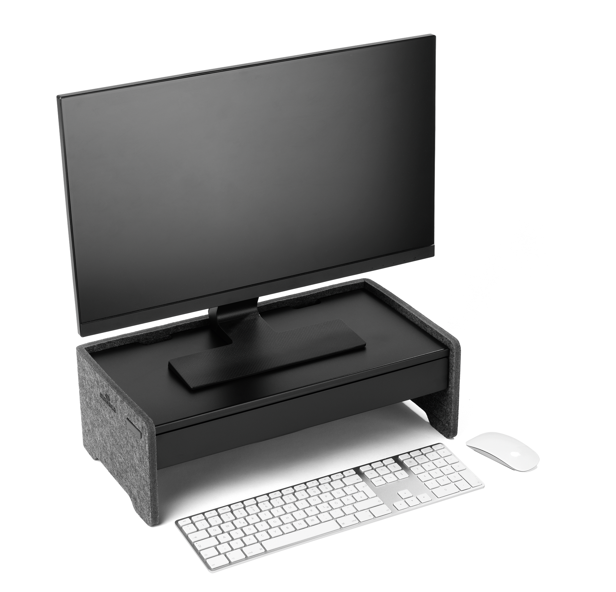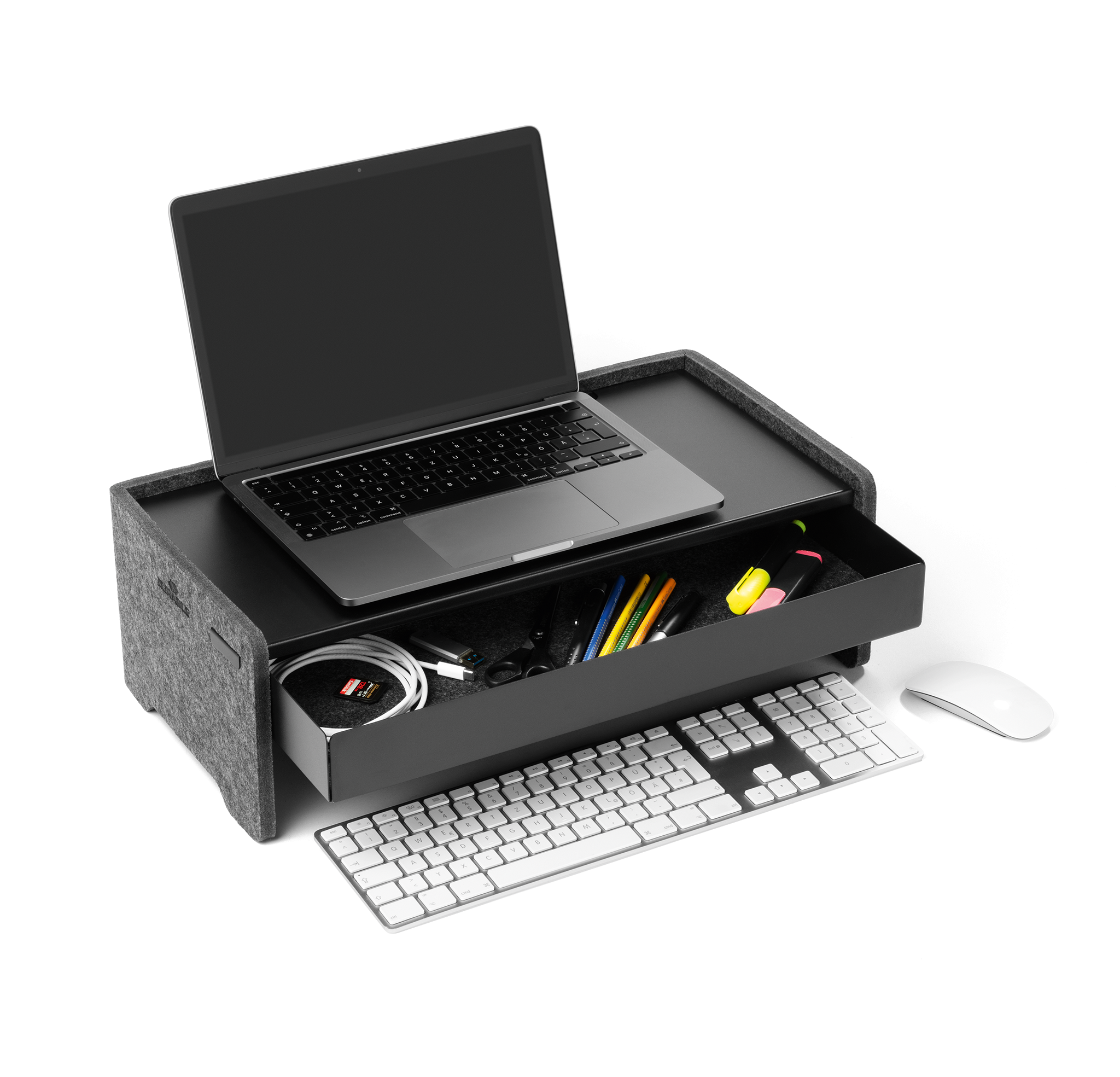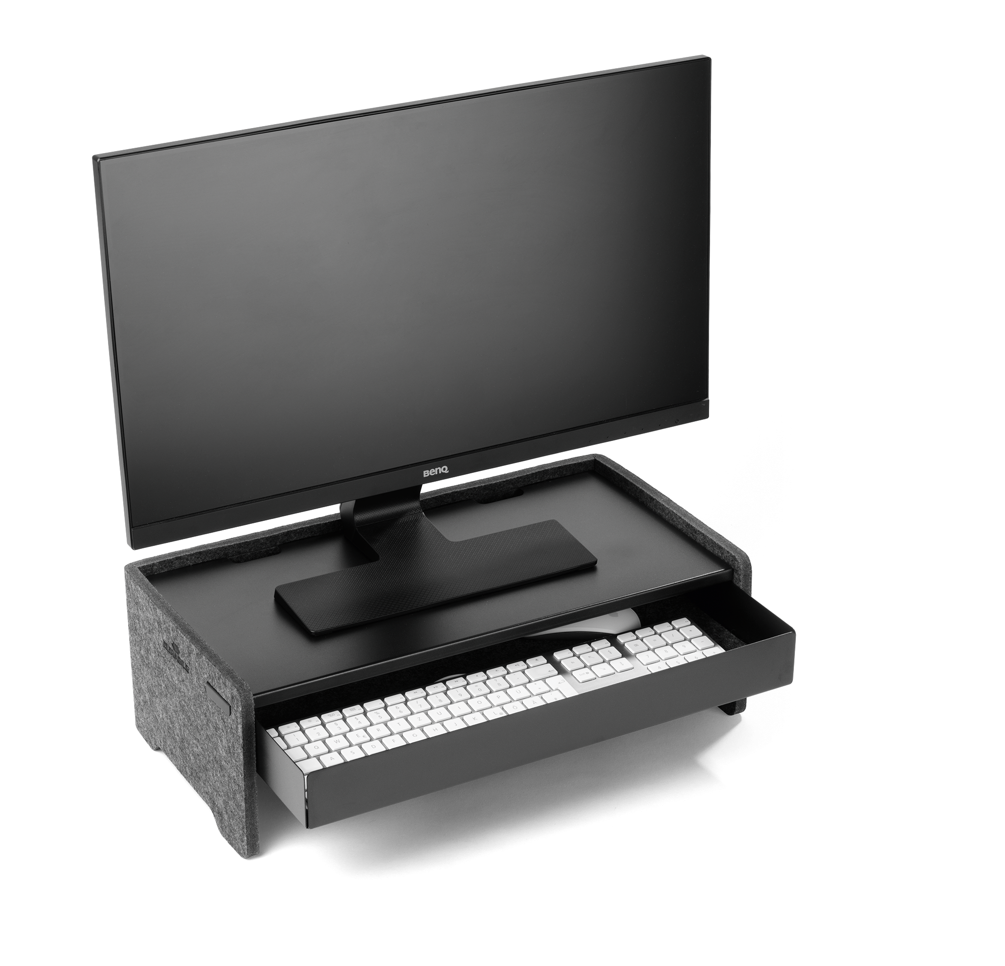 Med en monitor stander placeres computerskærmen i en god ergonomisk højde, samtidig med at der frigøres bordplads. Kombiner det med en skuffe til opbevaring af kuglepenne, dokumenter, kabler osv. EFFECT-serien, som denne skuffe er en del af, er lavet af metal og har en blød, lydabsorberende og slidstærk filtbundmåtte. Filten er lavet af PET-plast, hvoraf 60% er indsamlet og genanvendt PET-plast (rPET). To glideskinner er presset ud af bunden af skuffen og fastgjort til skærmstativet. Hullerne efter disse skinner er dækket af filtmåtten. Produkterne i serien er 100% genanvendelige og er bæredygtigt emballeret med ressourcebesparende og plastfrie materialer. Mål: 46,8 x 5,3 x 22,1 cm (BxHxD) Tilbehør: Monitor stander EFFECT, art. nr. 508158