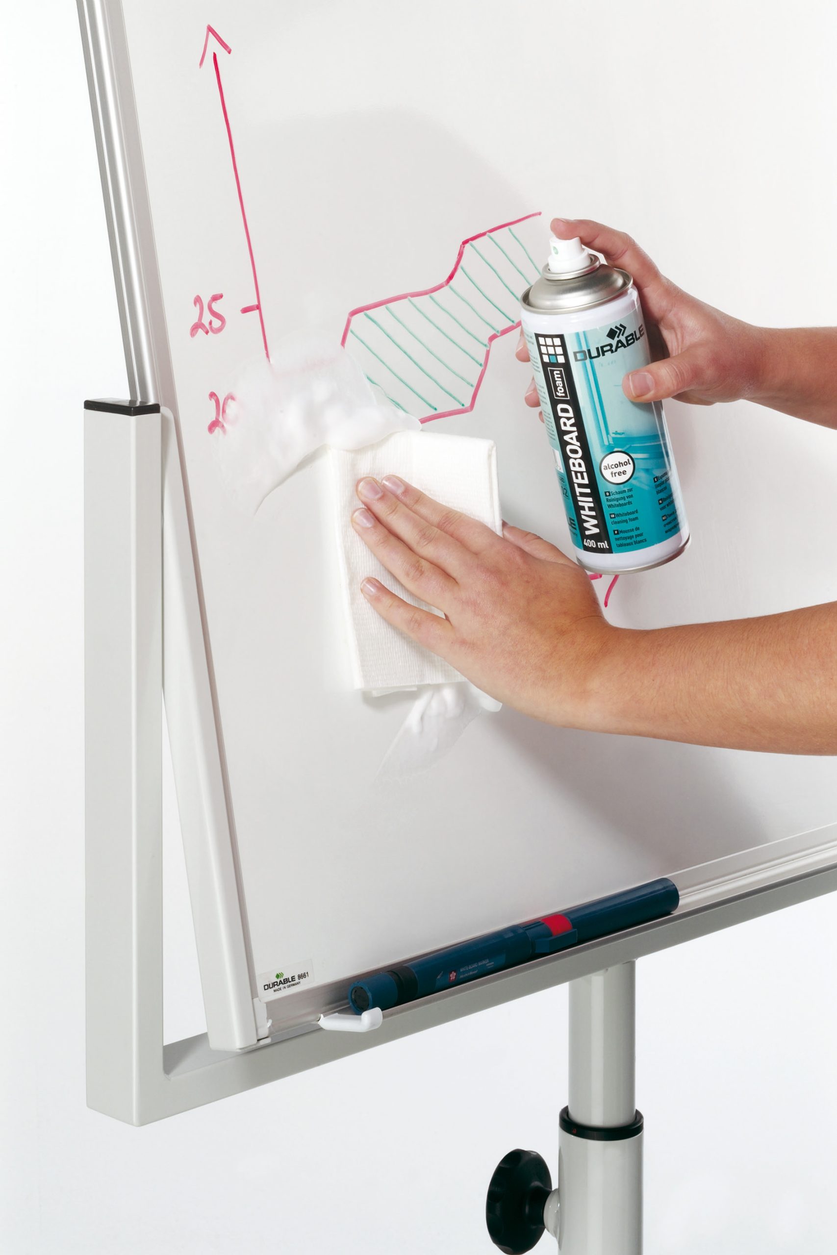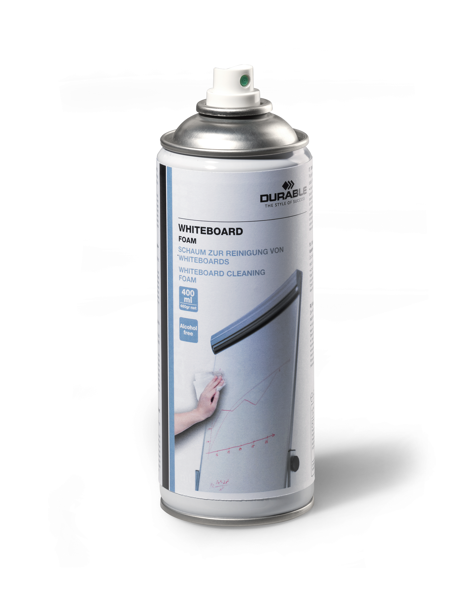 Renseskum til skånsom og effektiv rengøring af whiteboard. Fordelen ved skum er, at det ikke løber. Spray på overfladen, der skal rengøres og tør efter. Anvendes sammen med renseserviet DRY CLEAN (Durable art nr 573402), der bestilles separat