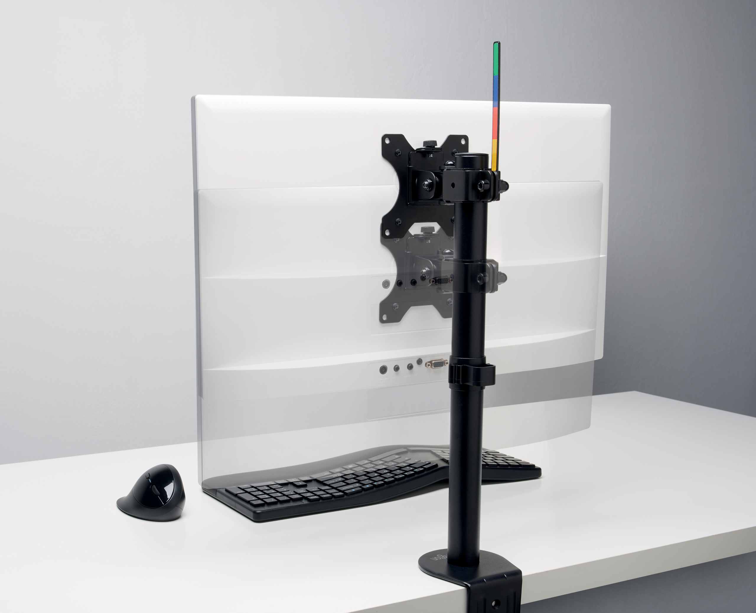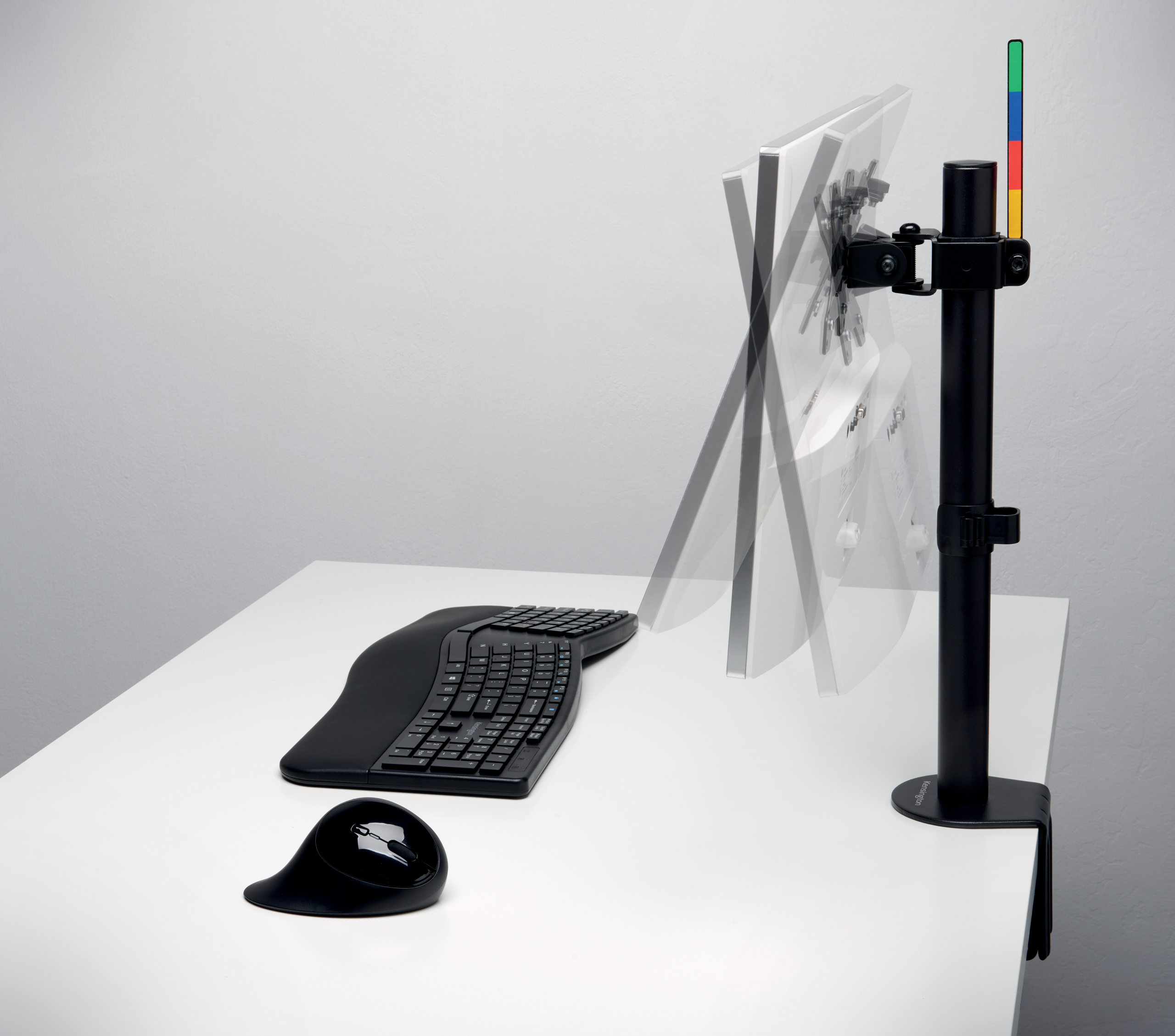 Det er nemt at finde den korrekte ergonomiske skærmhøjde takket være den robuste og stabile SmartFit® Ergo enkelt monitorarm. Ryd værdifuld plads på skrivebordet, mens du forbedrer ergonomien. Bredt justeringsområde giver ± 90° drejning, ± 180° rotation (til liggende eller stående retning) og ± 45° skærmjustering. Robust C-klemme og fastgørelseslås i metal er nemme at installere og beskadiger ikke eller mærker skrivebordet eller bordet. Kompatibel med skærme på op til 34″og 8 kg.