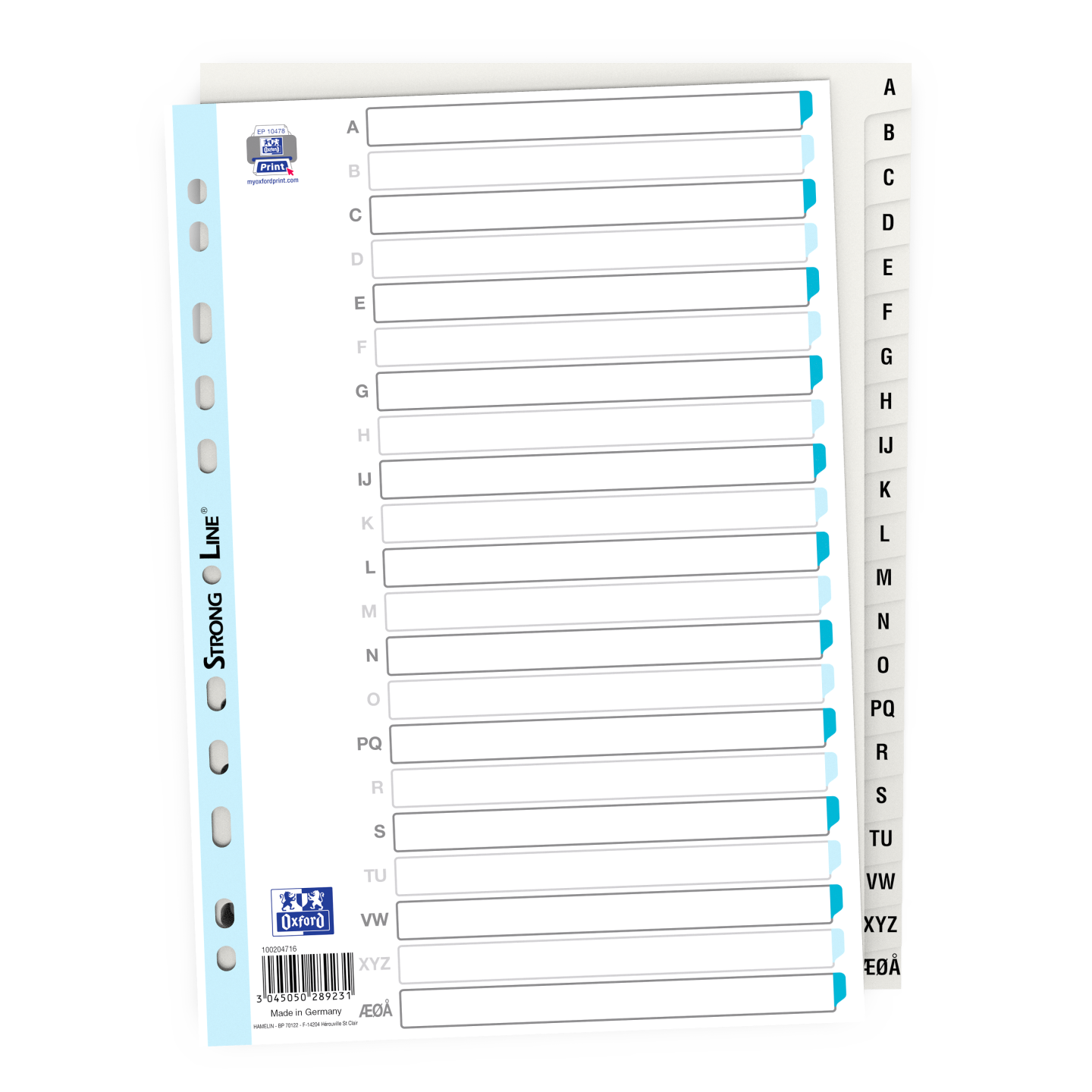 lavet af robust 0,12 mm stærk polypropylenfolie. Alfabetiske danske faner. 21 faner. StrongLine® hulforstærkning.