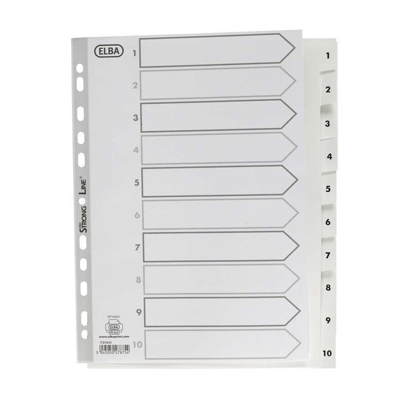 Numeriske faner 1-10 positioner. Ensidigt trykt, med sort linie. registertappen kan tages af på grund af perforeringen.