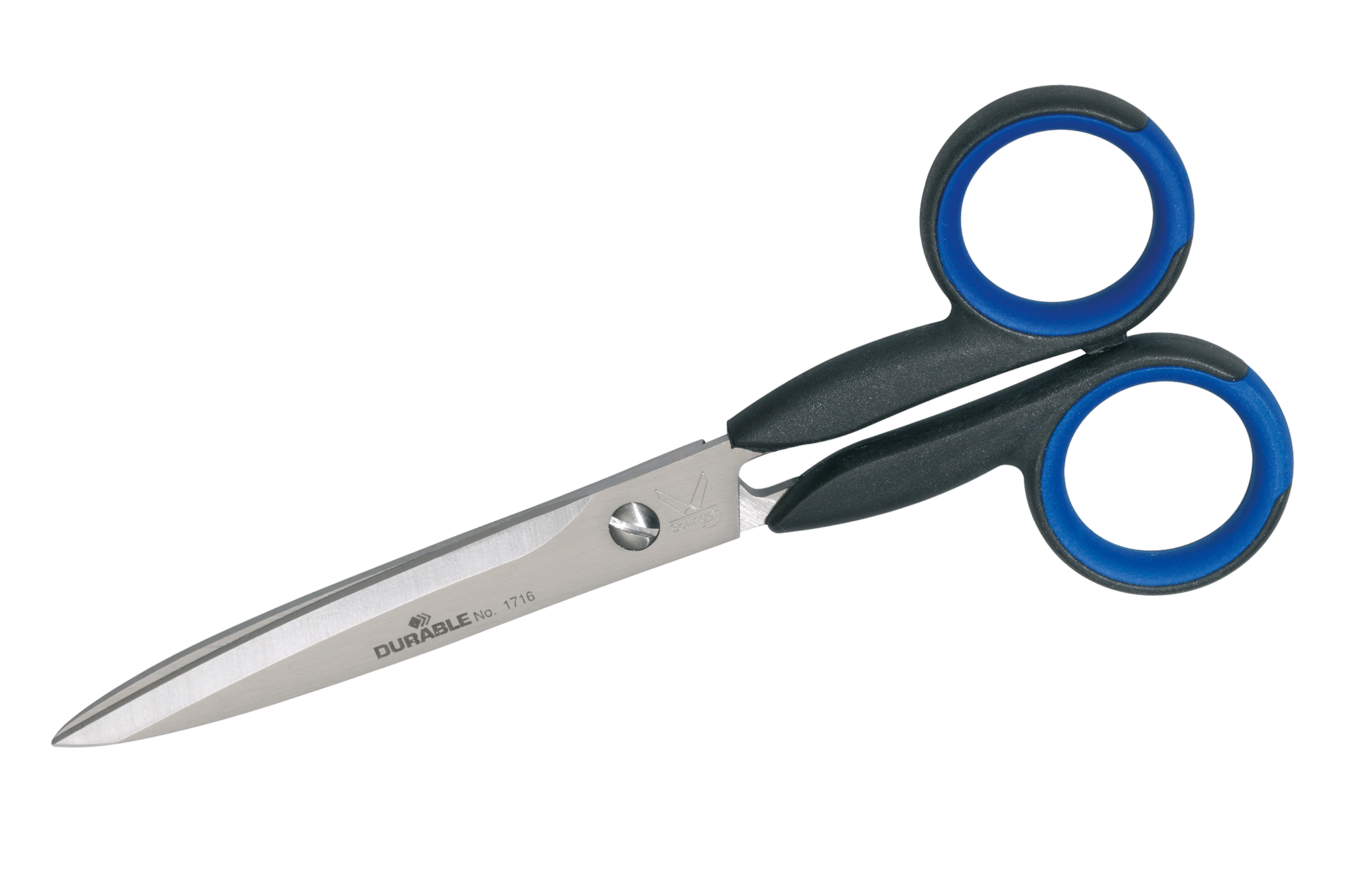 Universalsaks 15 cm til papir, karton, plast og andre stive materialer. Hærdet, rustfrit kvalitetstål fra Solingen, Tyskland. Justerbar skrue for et godt snit. Ergonomisk tofarvet håndtag udført i gummi.