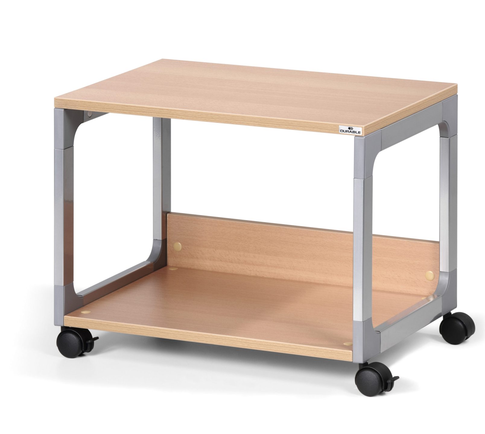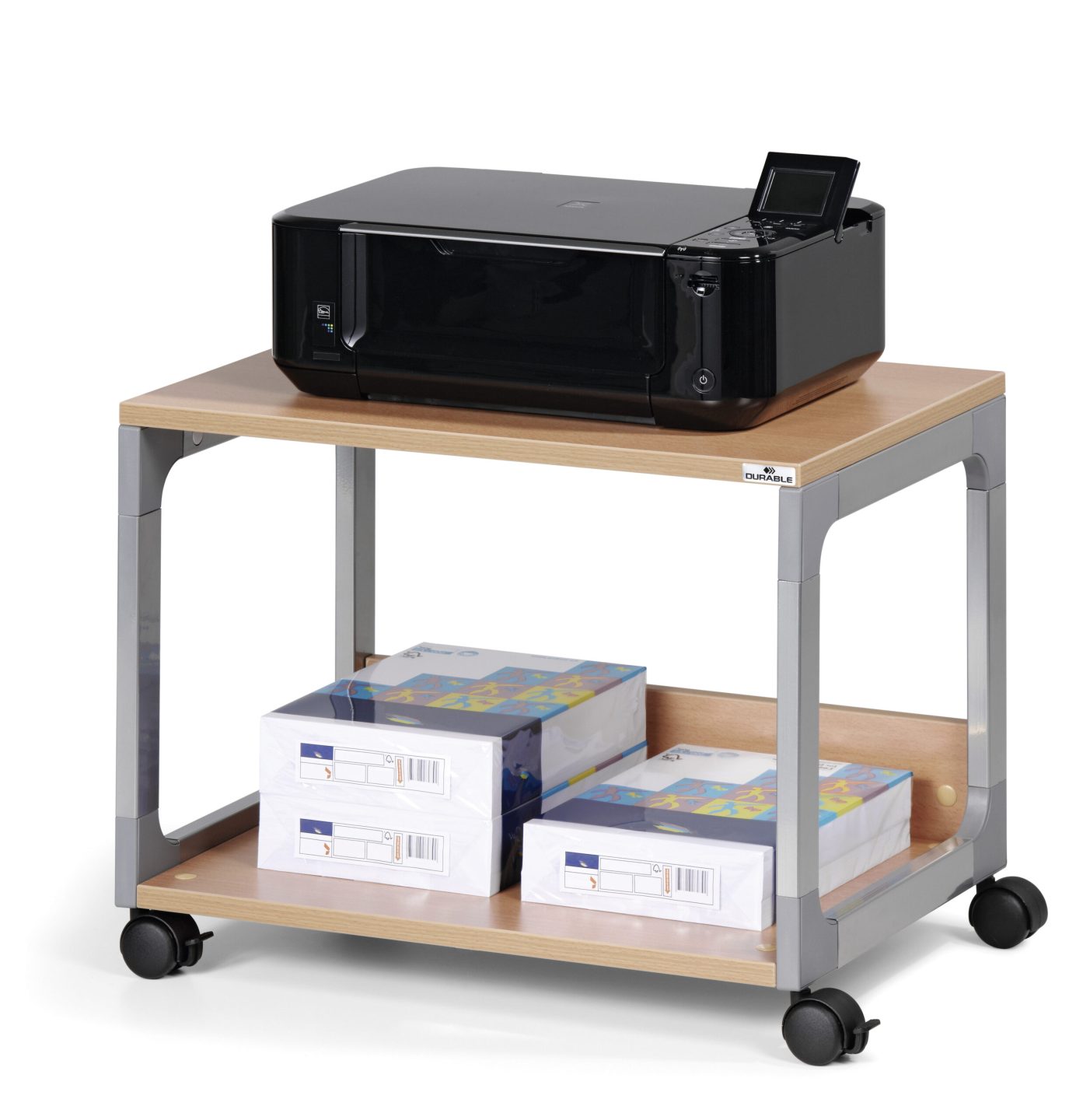 Rullebord med to hylder, ideel til printere og tilbehør.