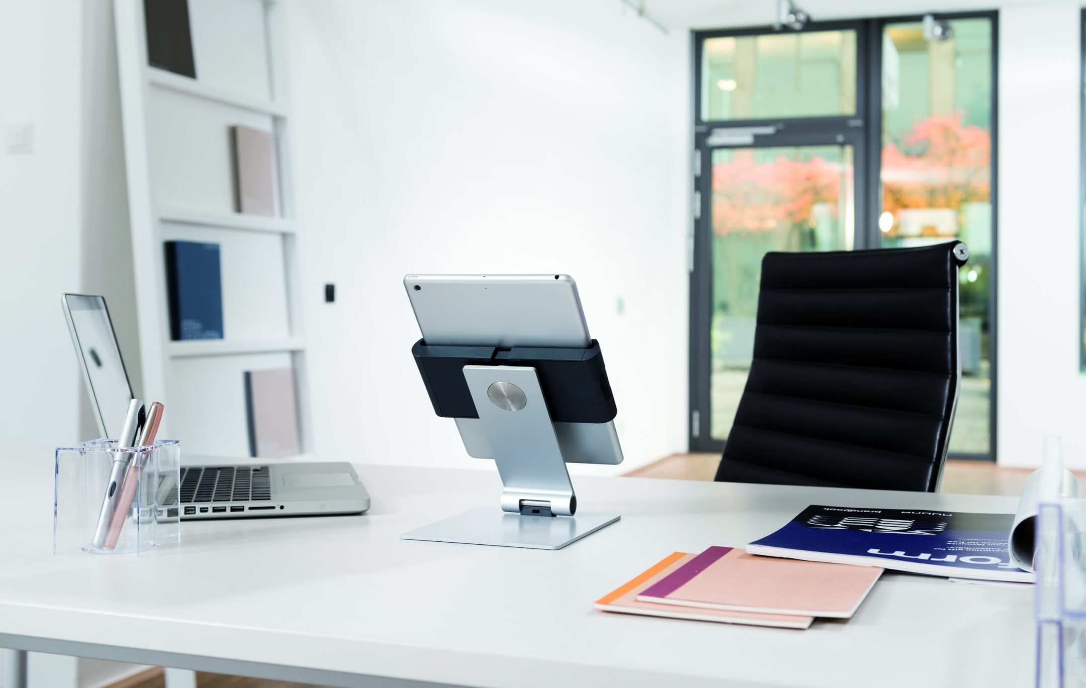 Højkvalitets bordholder til tablet. Tablet holder til brug i butikker, receptioner og salg og showrooms. Sikker og stabil fod.