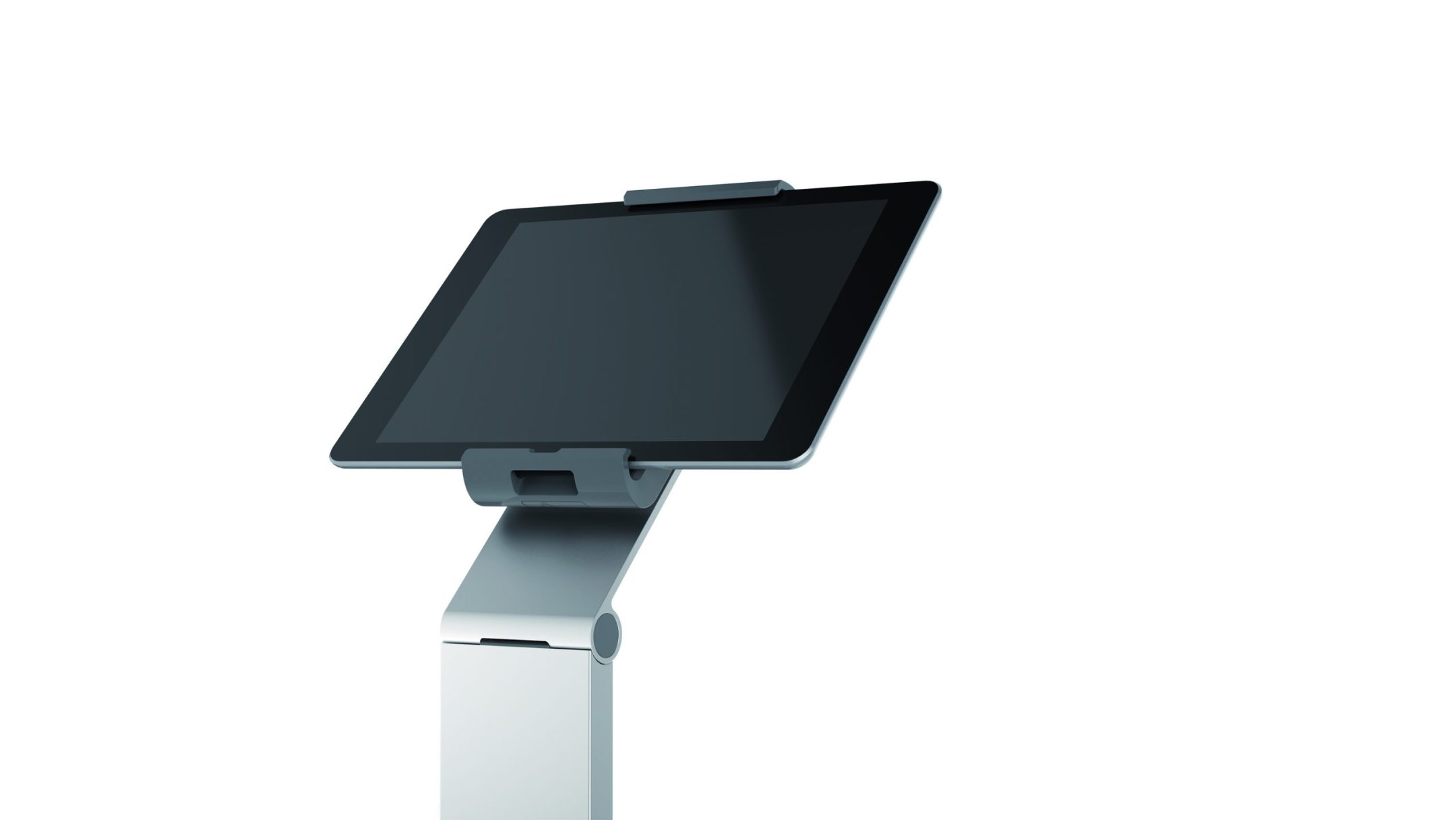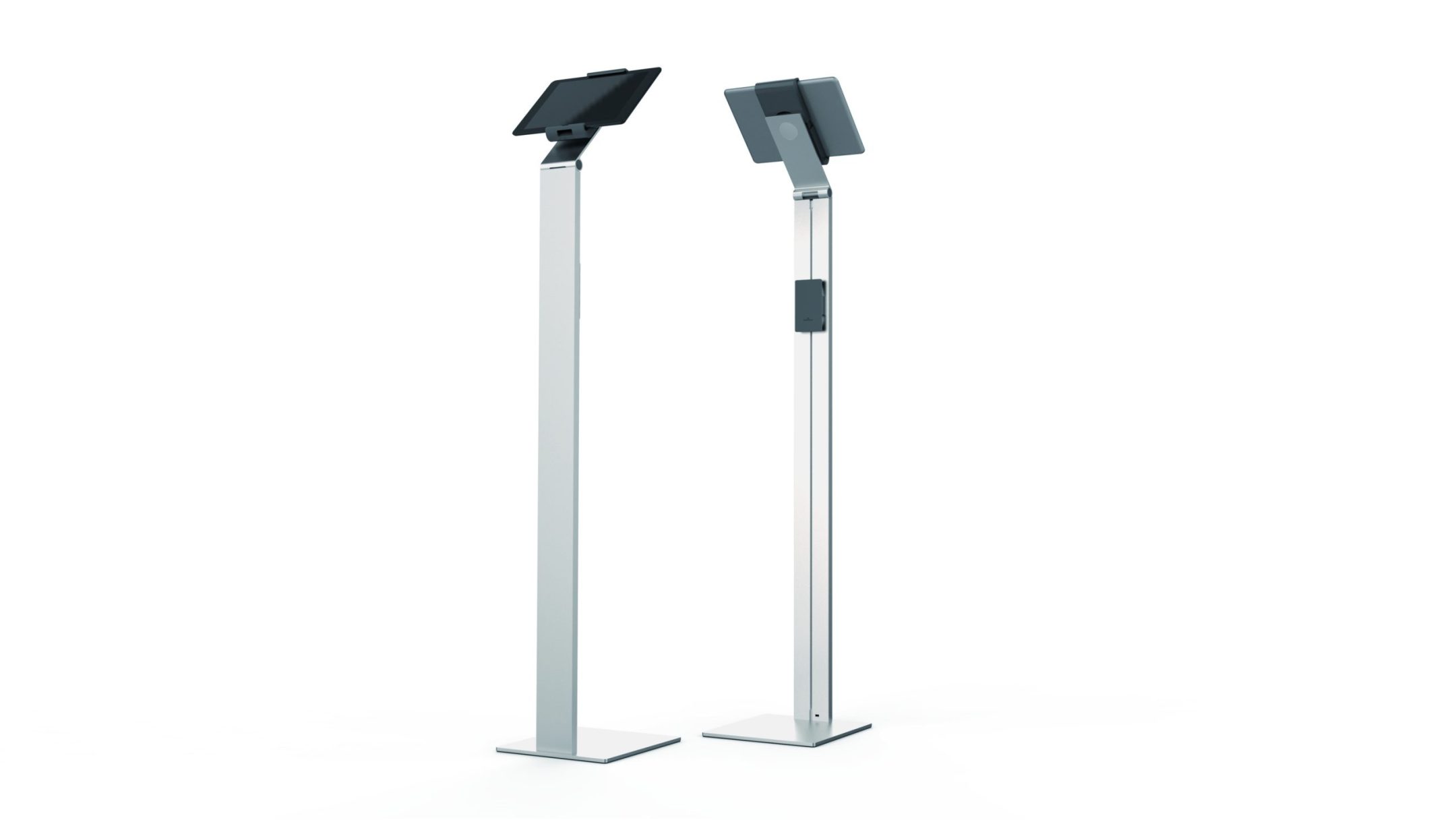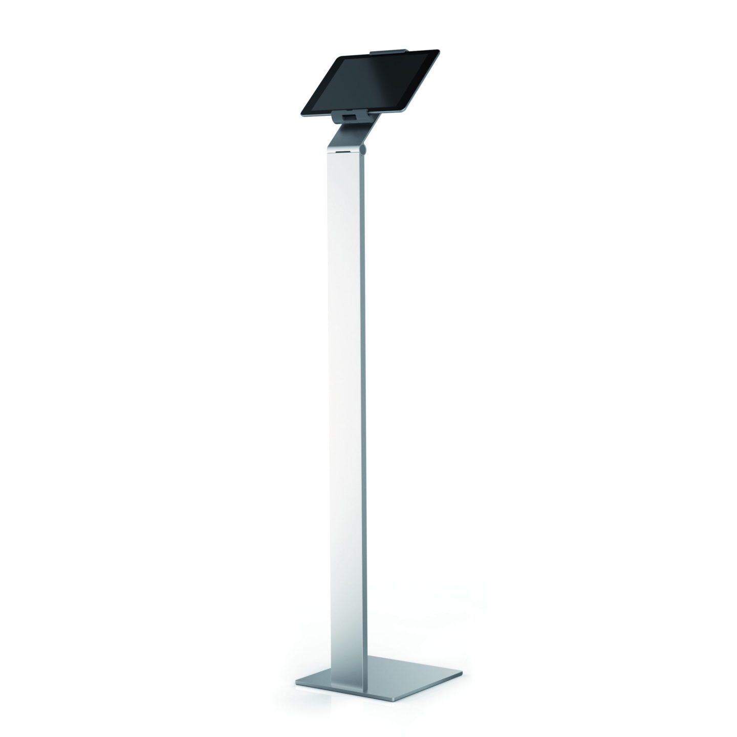 Tidsløs gulvstander med holder til tablet. Denne tablet holder er førsteklasses værktøj til præsentationer og informationsdeling i det offentlige rum, på messer, udstillinger, hoteller og restauranter.