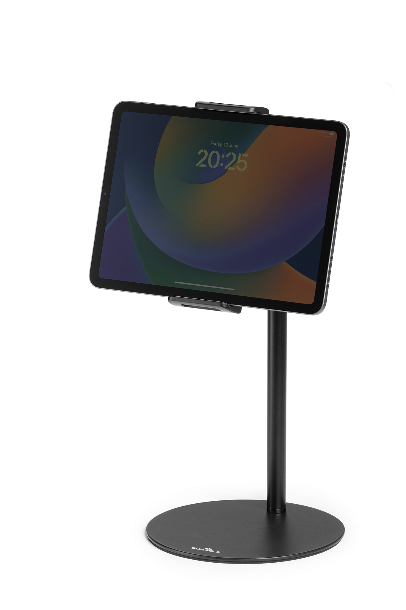 En tabletholder gør det mere behageligt og ergonomisk at bruge en tablet eller mobiltelefon, f.eks. som en ekstra skærm på kontoret eller under studierne, på plejehjem for at holde kontakten med de nærmeste, derhjemme til opskrifter, digitale magasiner og sociale medier. TWIST-serien har en holder med skridsikre puder, der holder enheden på plads og beskytter den mod ridser. Holderens greb passer til tablets eller mobiler såsom iPhone, iPad og Samsung fra 4,7″ op til 13″ med en maksimal vægt på 1 kg og er fastgjort til et kugleled, der kan drejes 360°. Der er også en åbning til ladekablet. TWIST TABLE er 37 cm høj, og takket være en 19 cm rund bundplade er den meget stabil. Stærk svanehals med trinløs højdejustering og læsevinkel, der bliver i den ønskede position. Fremstillet af metal og ABS-plast. 100% genanvendeligt.