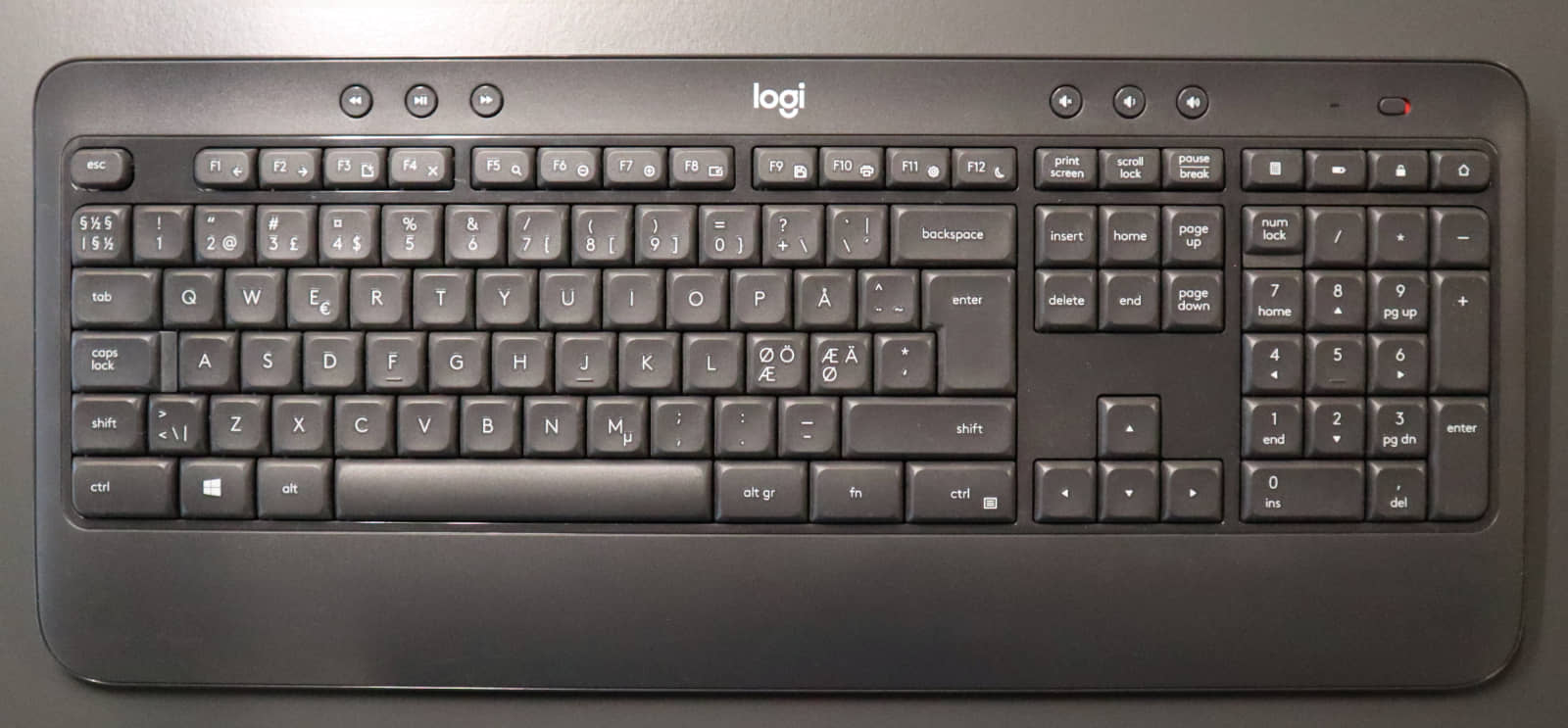 Keyboardet er full-size, det vil sige, at keyboardet har et numerisk tastatur i højre side. Logitech musen er ergonomisk med bløde gummi-greb i siderne, der gør den behagelig at holde om.