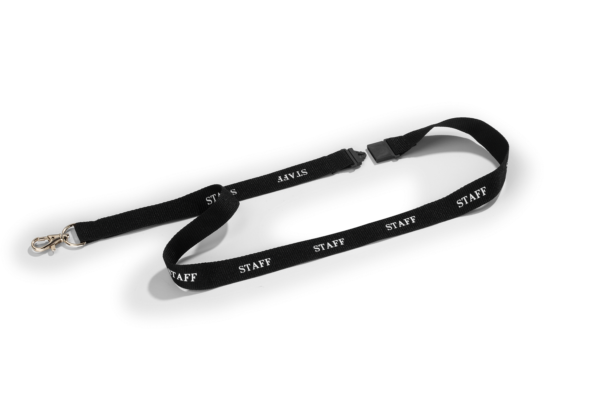 Halssnor 20 “staff”20 mm bred halssnor med hvid tekst “STAFF” samt sikkerhedslås og karabinhage. Længde 44 cm