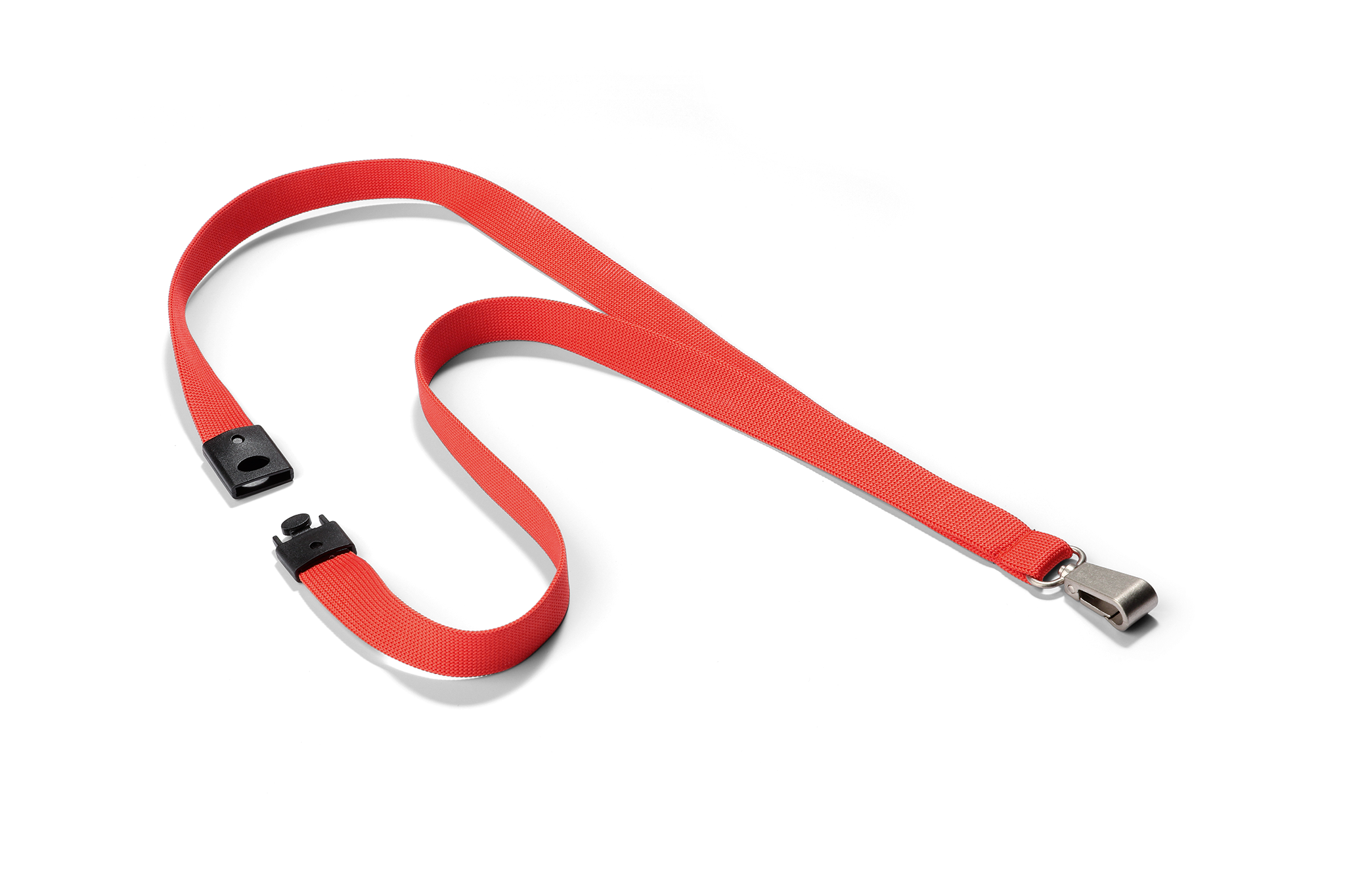 Premium halssnor af silkeagtig stof og sikkerhedsmekanisme der åbner, hvis halssnoren bliver fanget. Den 12 mm brede karabinhage af metal passer til alle kortholdere og kongresmærker med udstansede brede huller. Designet af karabinhagen sikrer at kortholderen hænger i den rigtige position og kan læses. Længde 44 cm, bredde 1,5 cm.
