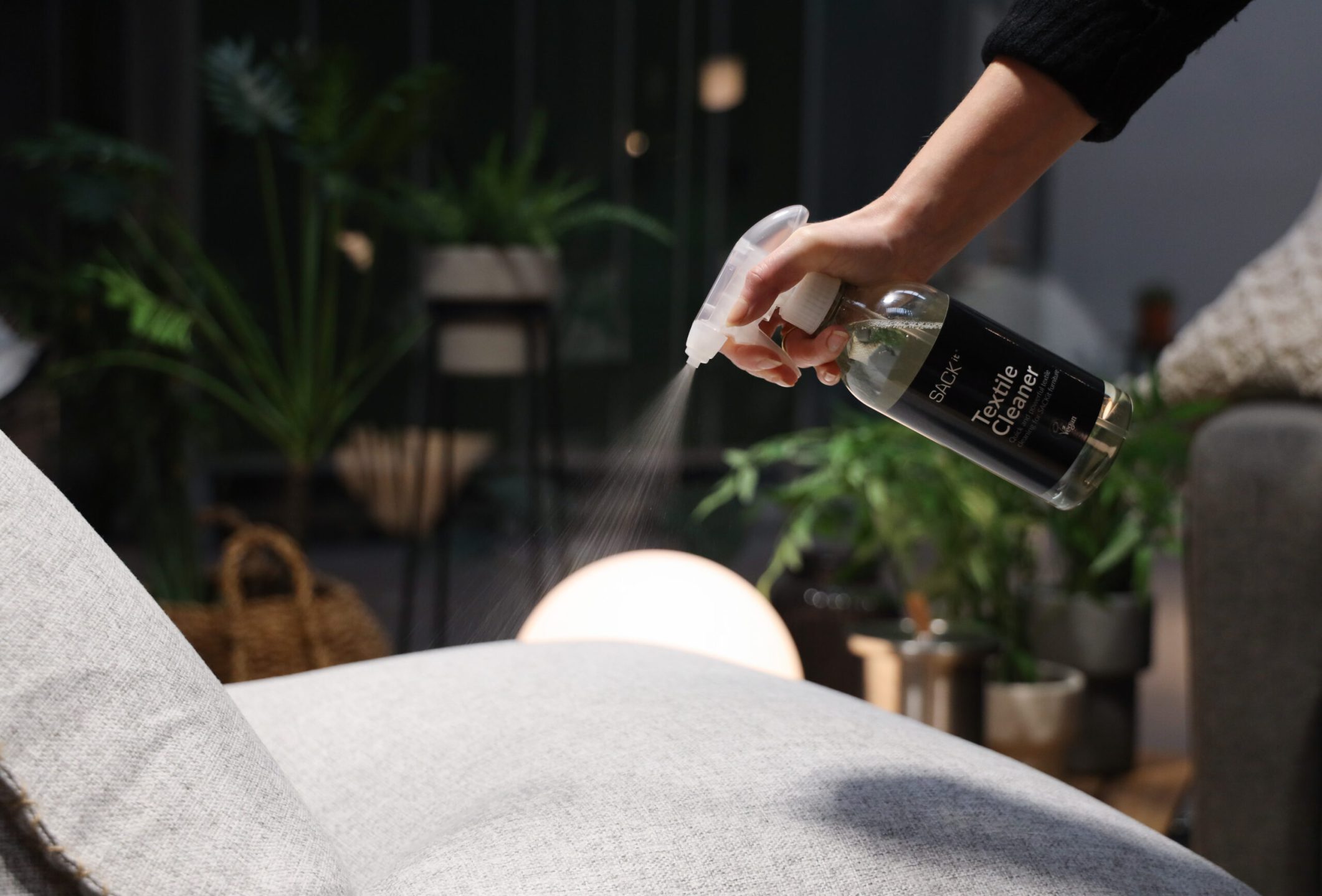 SACKit Textile Cleaner er en hurtigtvirkende og effektiv løsning til rengøring af tekstiler på SACKit møbler.